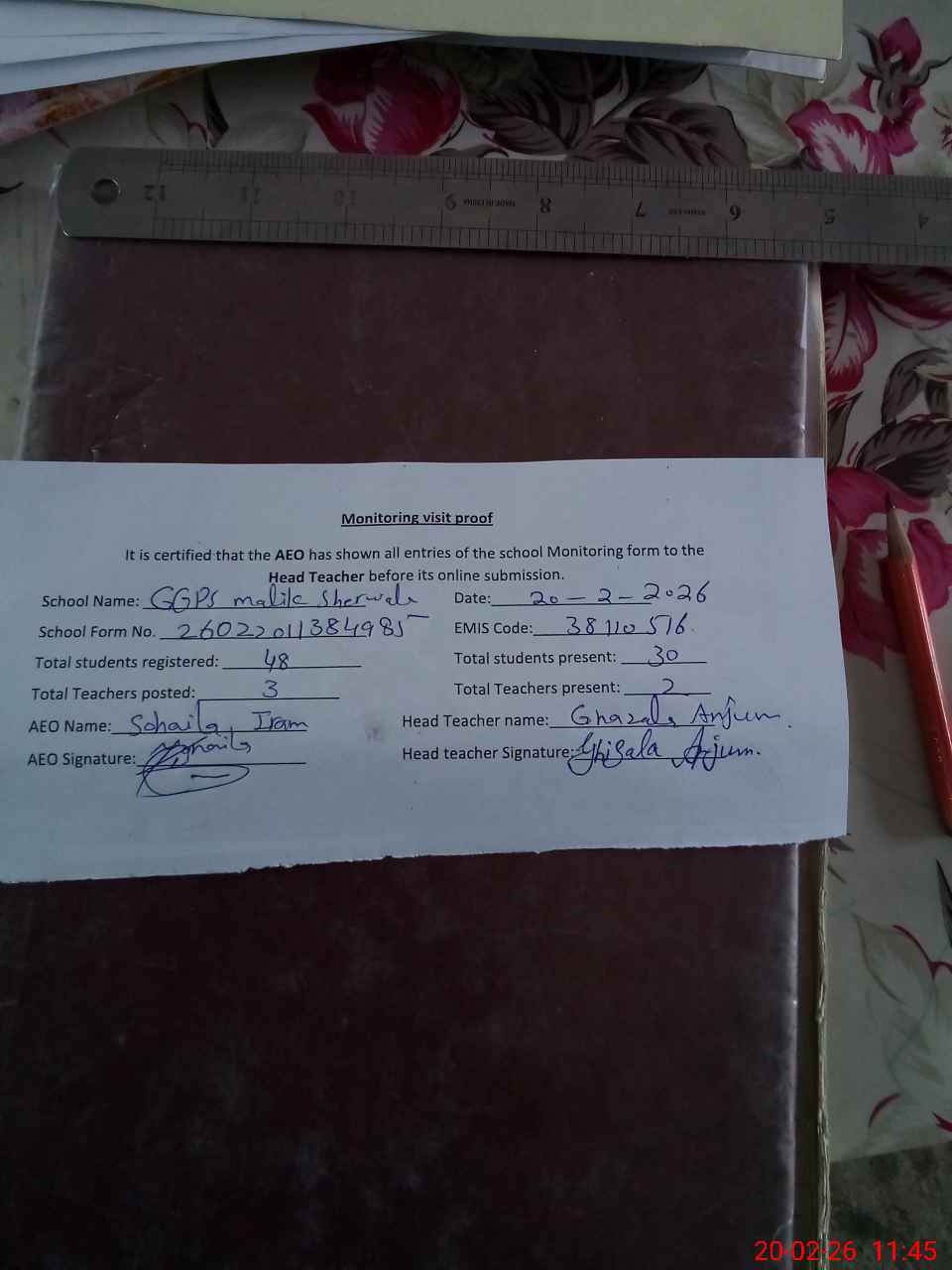 | EMIS Code: 38110516 | Name of School: GGPS MALIK SHER WALA | |||
