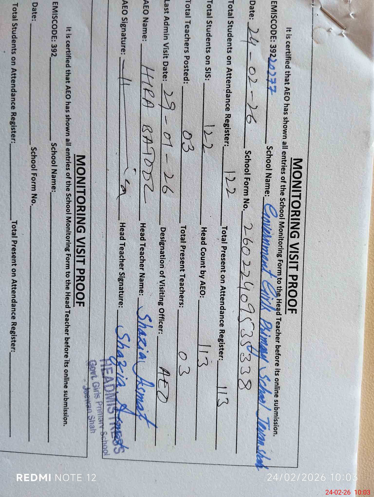 | EMIS Code: 39220277 | Name of School: GGPS JEVAN SHAH | |||
