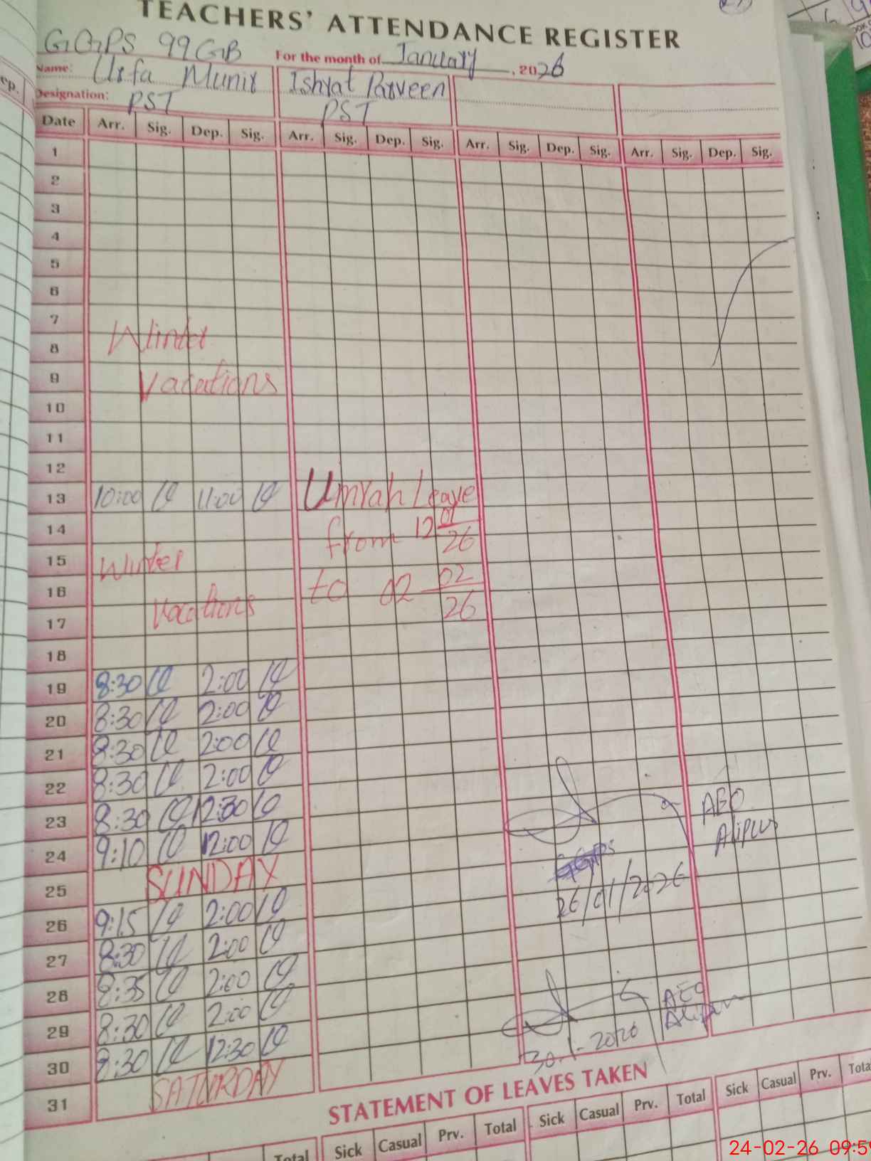 | Name: Ur**** Mu**** Designation: (School Headmaster's/Headmistress's) PST Phone/Cell Number: 03**** |