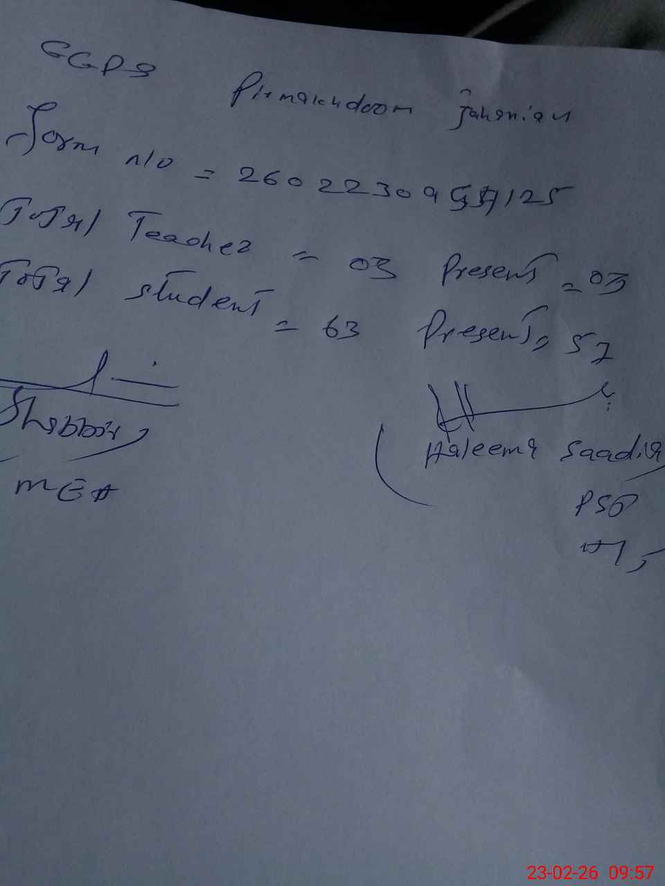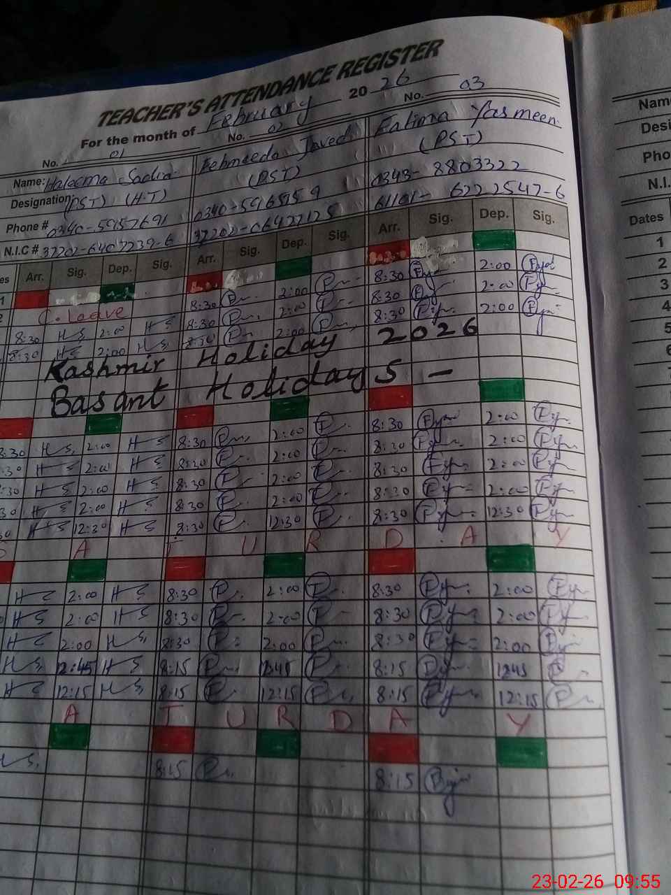 | Name: Se**** Ar**** Designation: (School Headmaster's/Headmistress's) Headmistress Phone/Cell Number: 03**** |