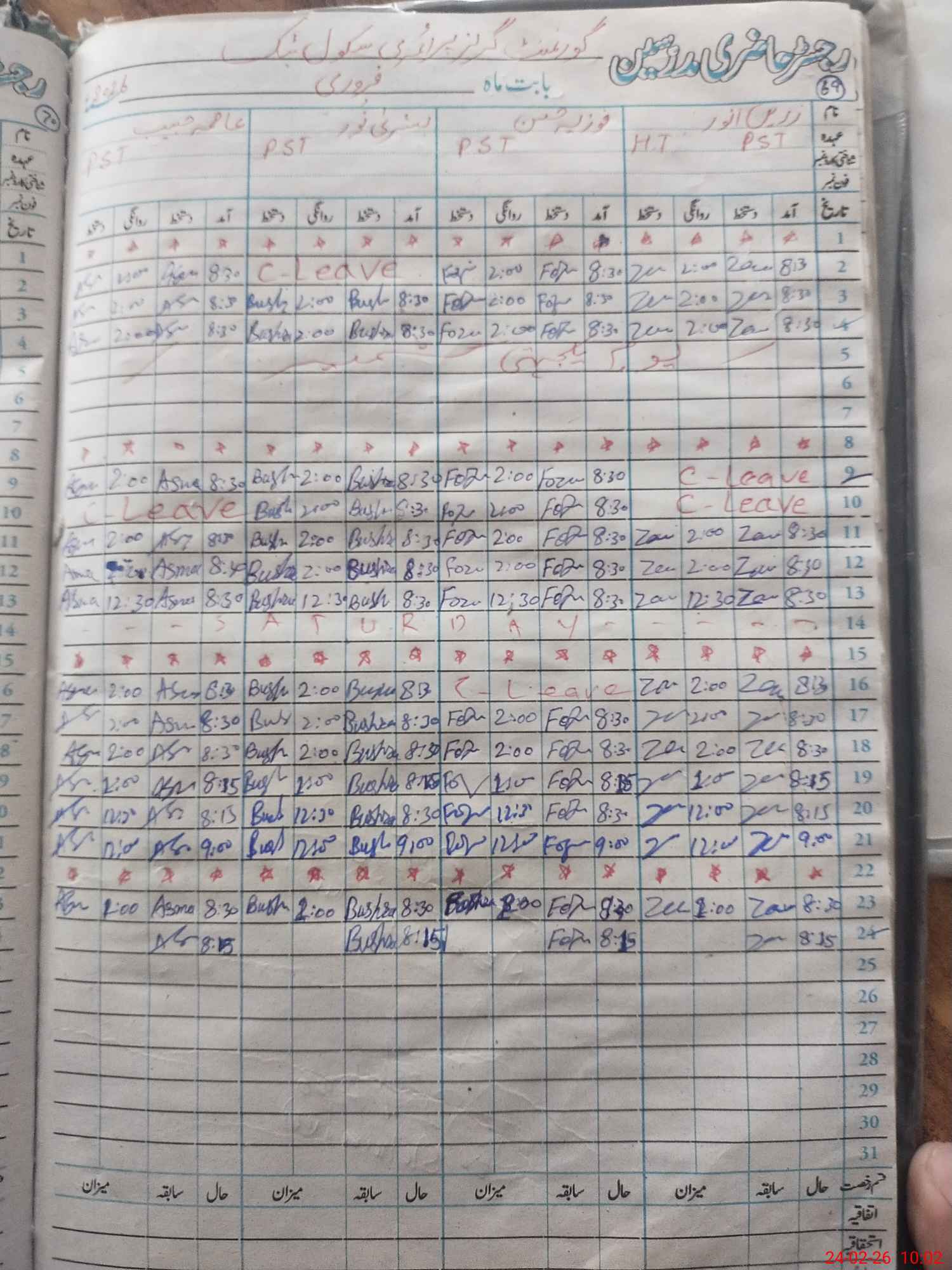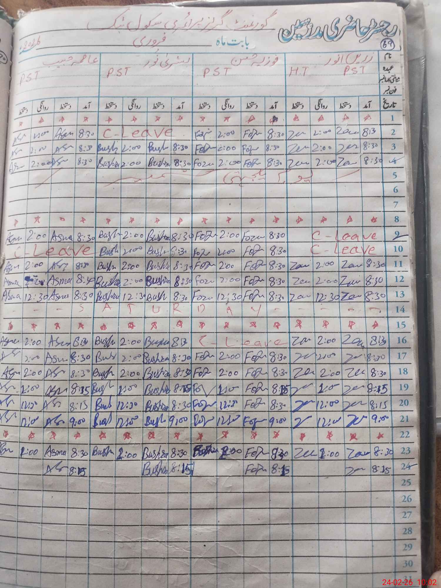 | Leave | Duty | Absent | Maternity | Medical | Ex- Pak |