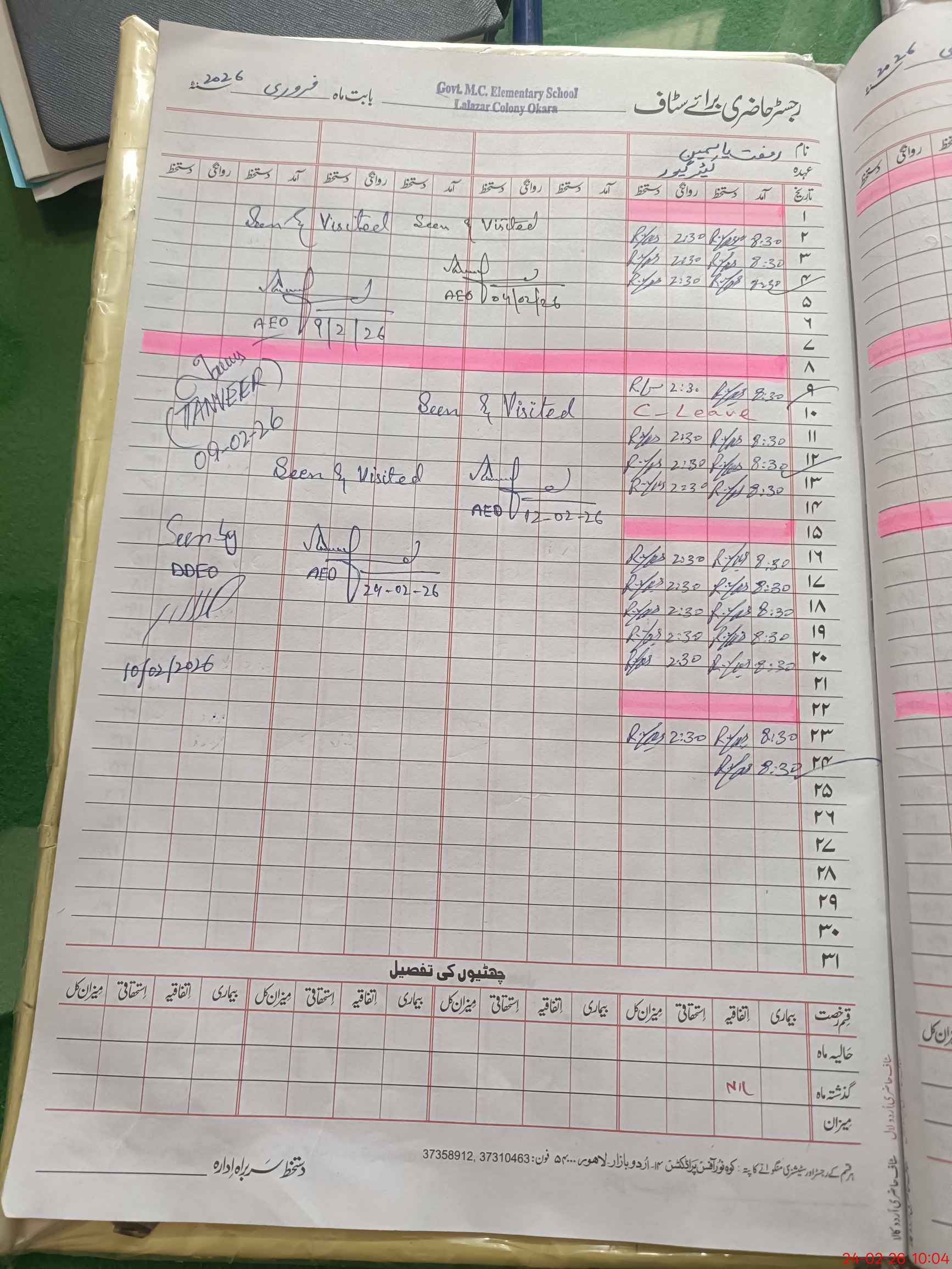 | CNIC | Full Name | Designation | R/C | Absence During Last Calender Month |