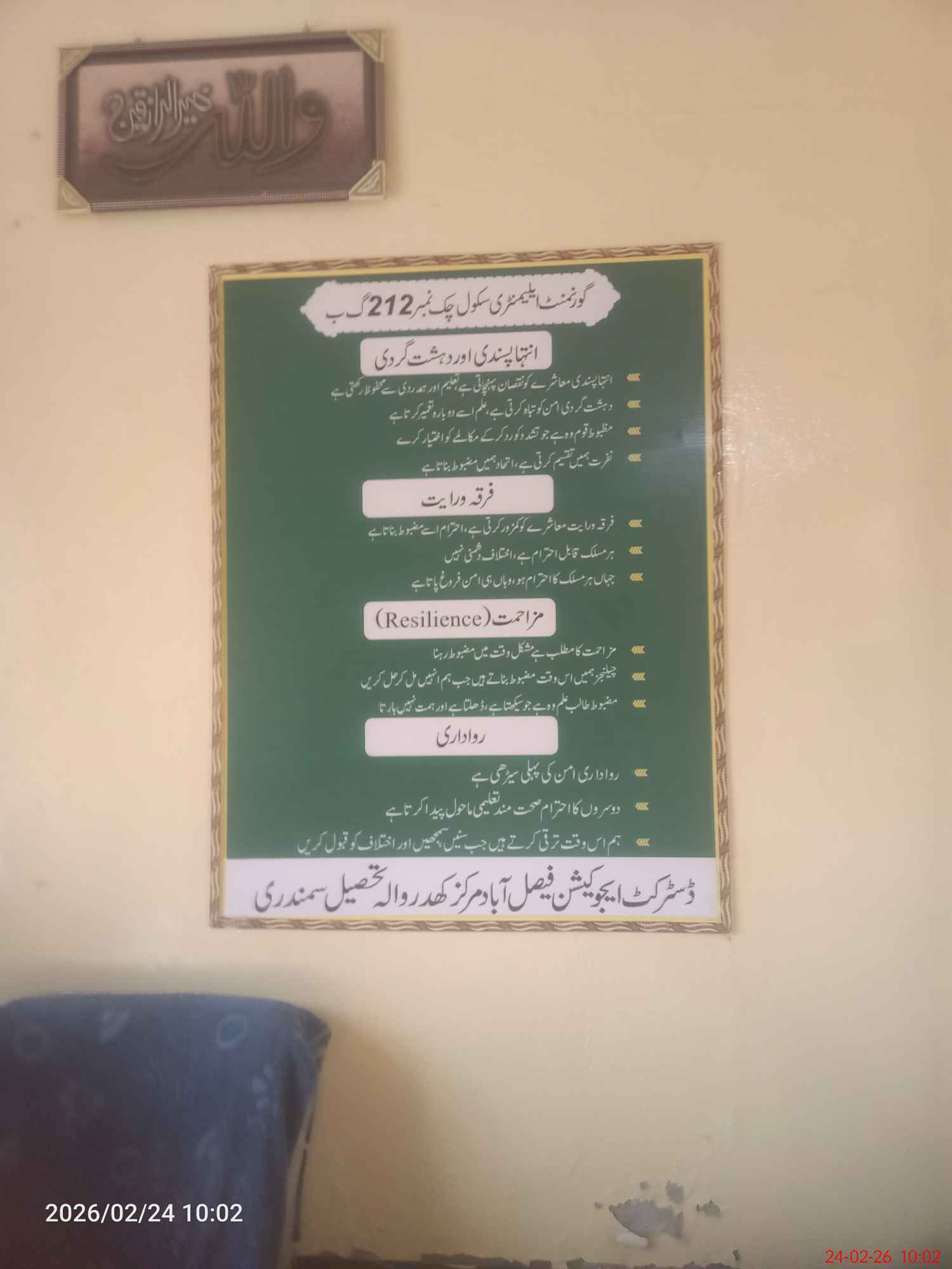 | District: FAISALABAD | Tehsil: SAMUNDARI | Markaz: KHIDDARWALA - MALE | Level: Middle | |