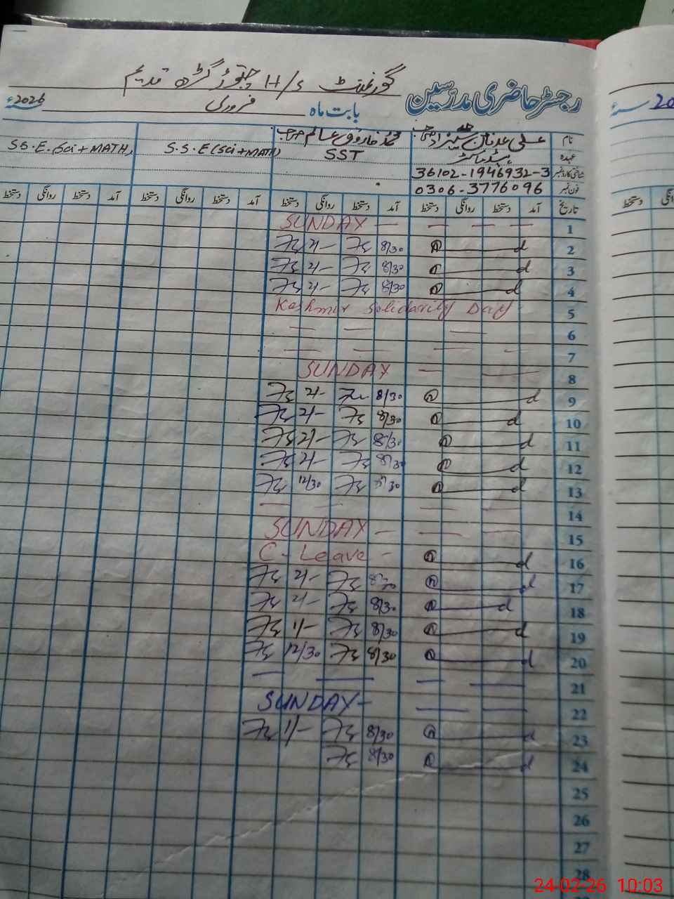 | Name: Al**** Ad**** Sh**** Designation: (School Headmaster's/Headmistress's) Head Phone/Cell Number: 03**** |