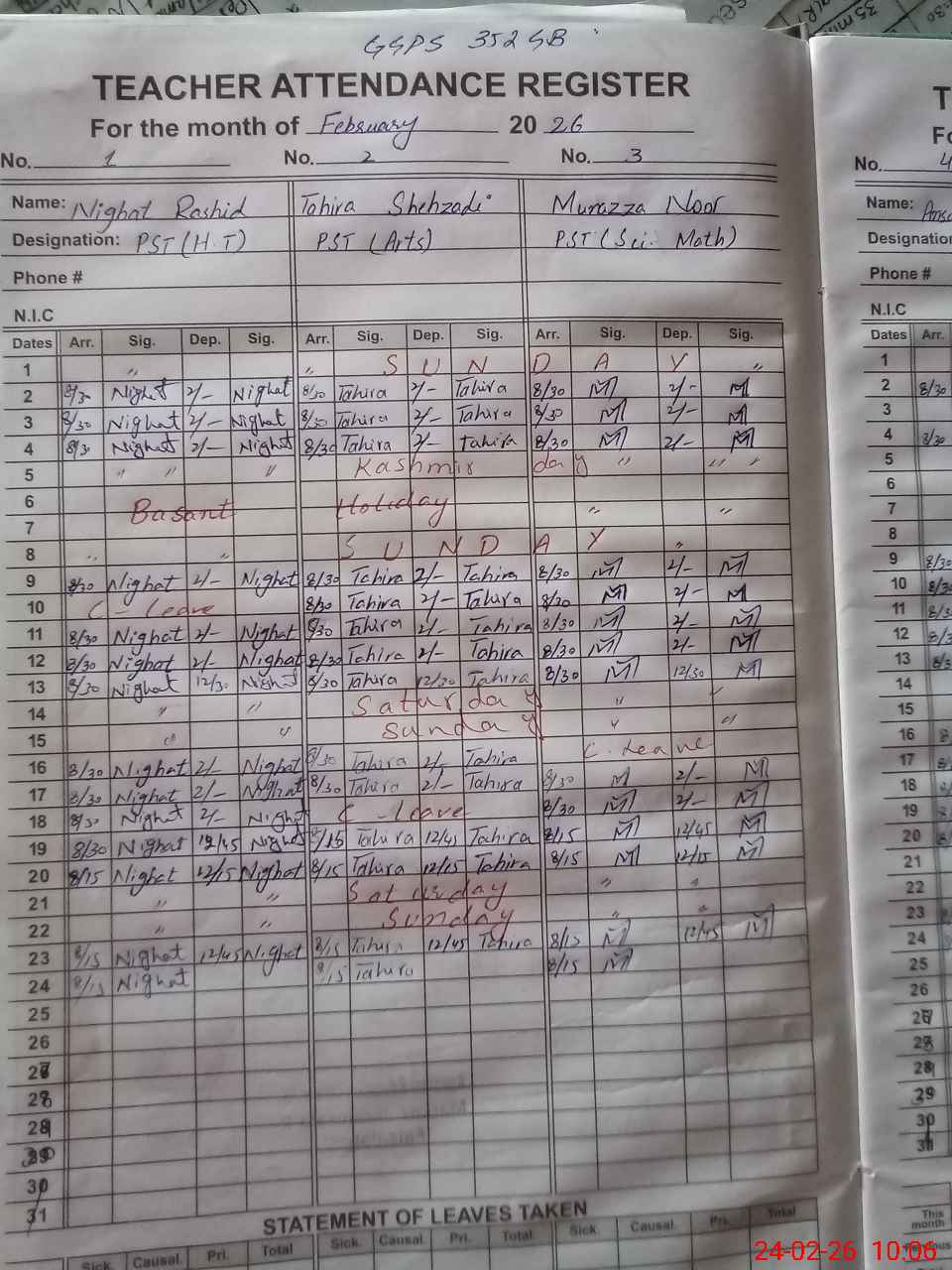 | Name: TA**** SH**** Designation: (School Headmaster's/Headmistress's) PST Phone/Cell Number: 03**** |