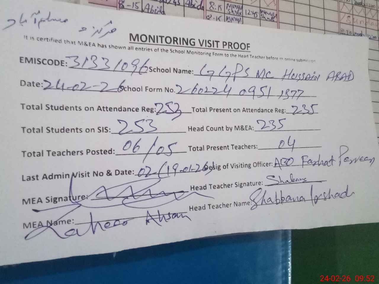 | EMIS Code: 31331096 | Name of School: GGPS MC HUSSAIN ABAD | |||