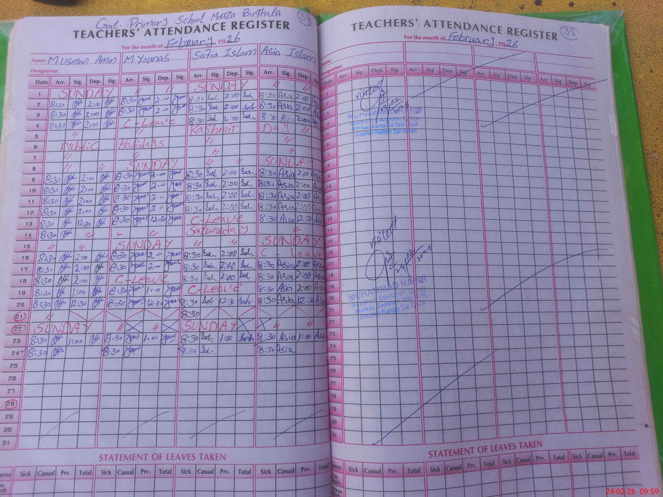 | Attendance Register | Head Teacher | MEA with School | Visit Proof |