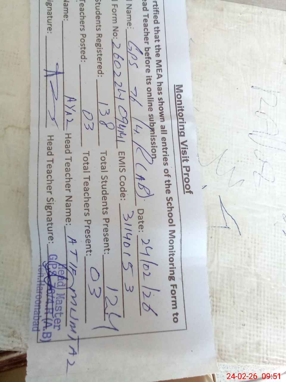 | EMIS Code: 31140153 | Name of School: GPS CHAK NO 76/4-R AB | |||