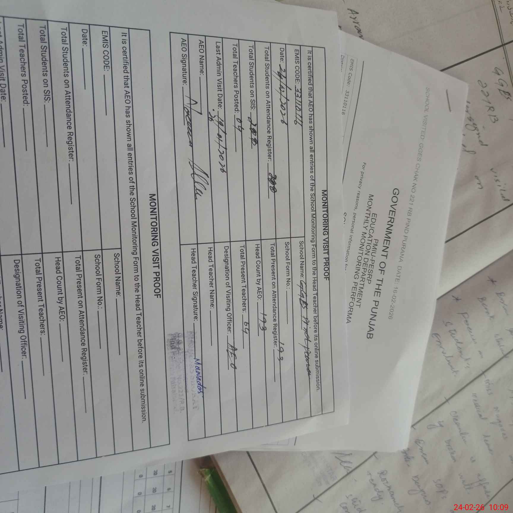| EMIS Code: 33110116 | Name of School: GGES CHAK NO 221 RB PIND PURANA | |||
