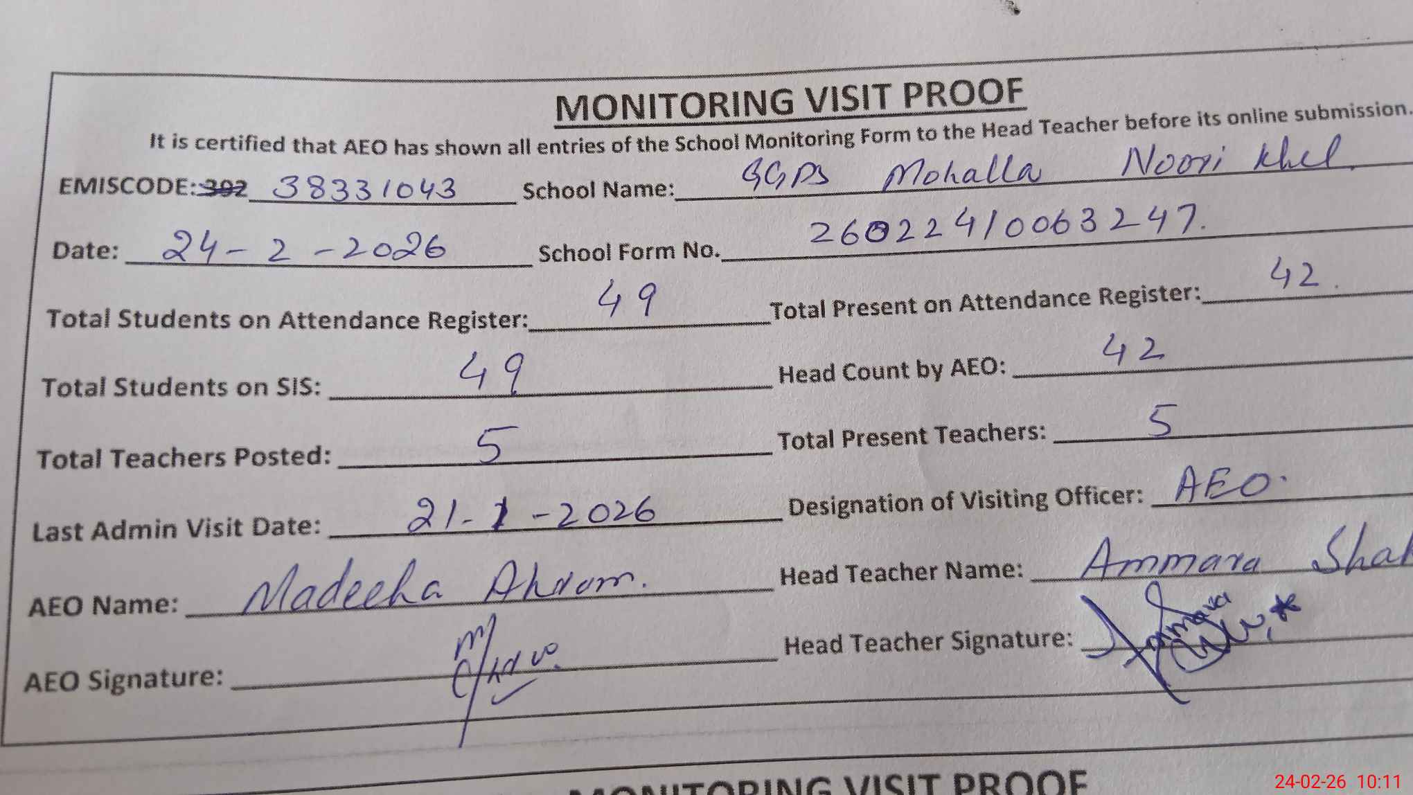 | EMIS Code: 38331043 | Name of School: GGPS MOH NOORI KHEL KUNDIAN | |||