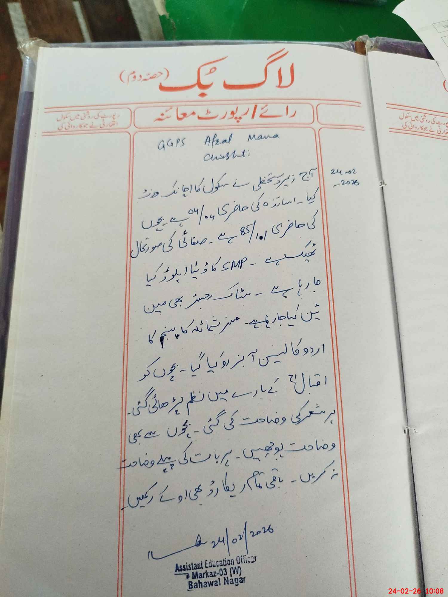 | EMIS Code: 31110362 | Name of School: GGPS AFZAL MANA CHISHTI | |||