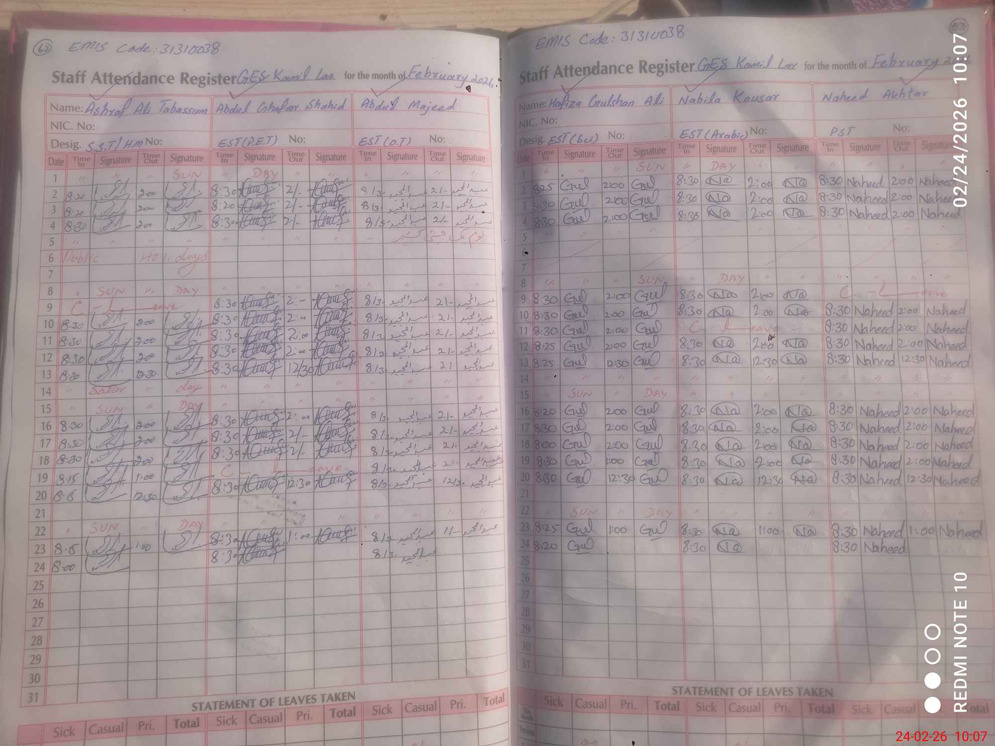 | CNIC | Full Name | Designation | R/C | Absence During Last Calender Month |