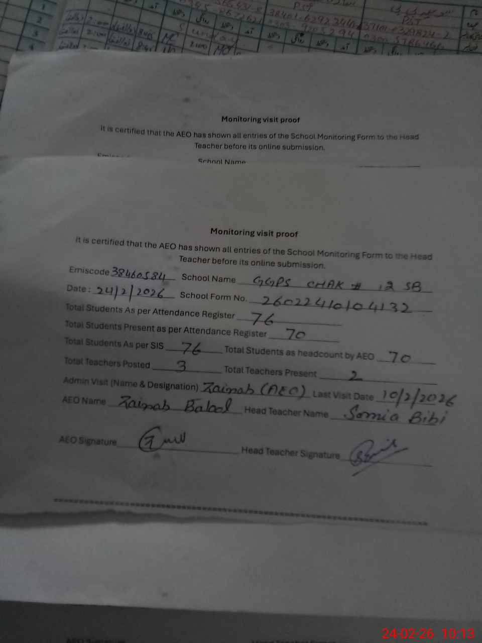 | Monitoring Date: 24-02-2026 | Start Time: 24-02-2026 09:55 AM | End Time: 24-02-2026 10:13 AM | Name of MEA: ZA**** BA**** | |
