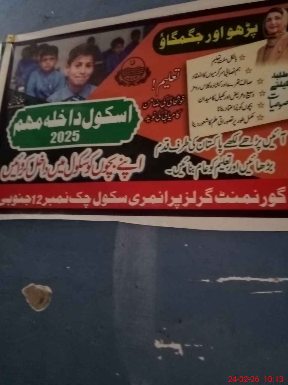 | EMIS Code: 38460584 | Name of School: GGPS CHAK NO.12 SB | |||