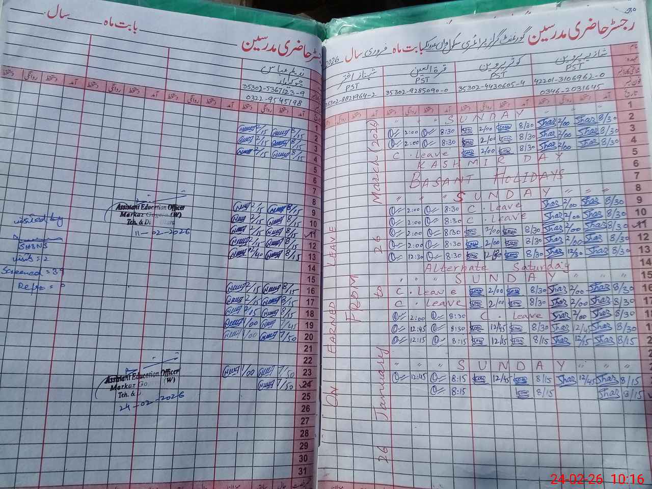 | Name: Sh**** Pe**** Designation: (School Headmaster's/Headmistress's) PST Phone/Cell Number: 03**** |