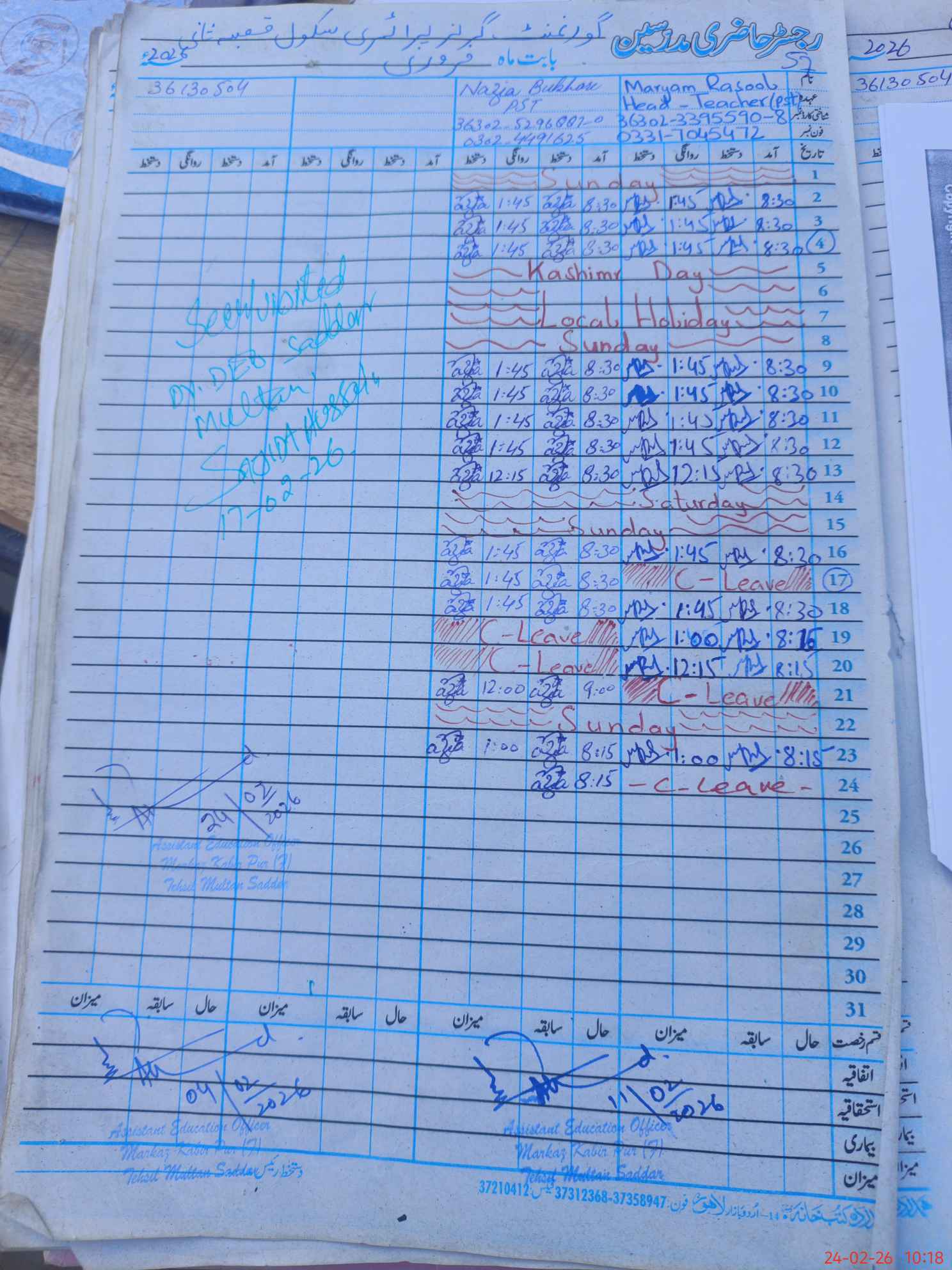 | District: MULTAN | Tehsil: MULTAN SADAR | Markaz: KABIR PUR - FEMALE | Level: Primary | |