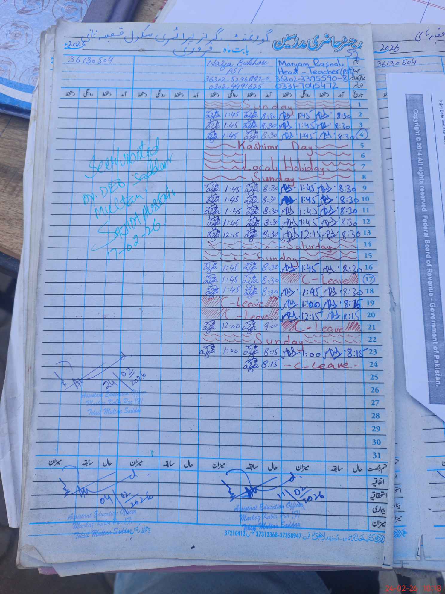 | Name: MA**** RA**** Designation: (School Headmaster's/Headmistress's) Pst Phone/Cell Number: 03**** |