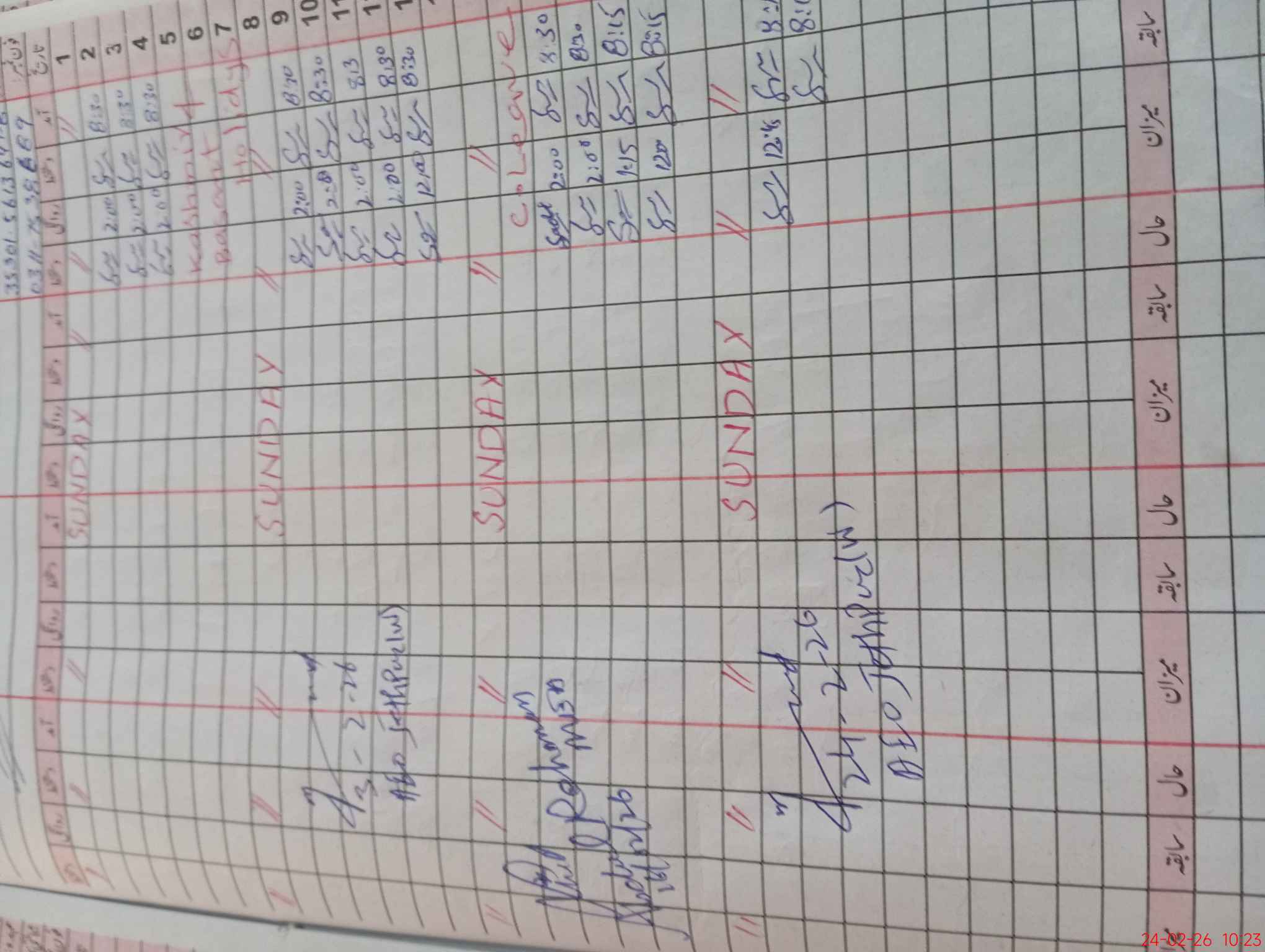 | No. of Students Present - Male | 0 | 0 | 6 | 4 | 3 | 0 | 0 | 0 | 0 | 0 | 28 | |||||