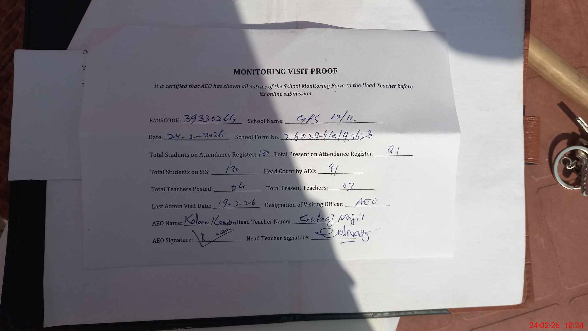 | EMIS Code: 39330264 | Name of School: GPS CHAK NO.10/1-L | |||