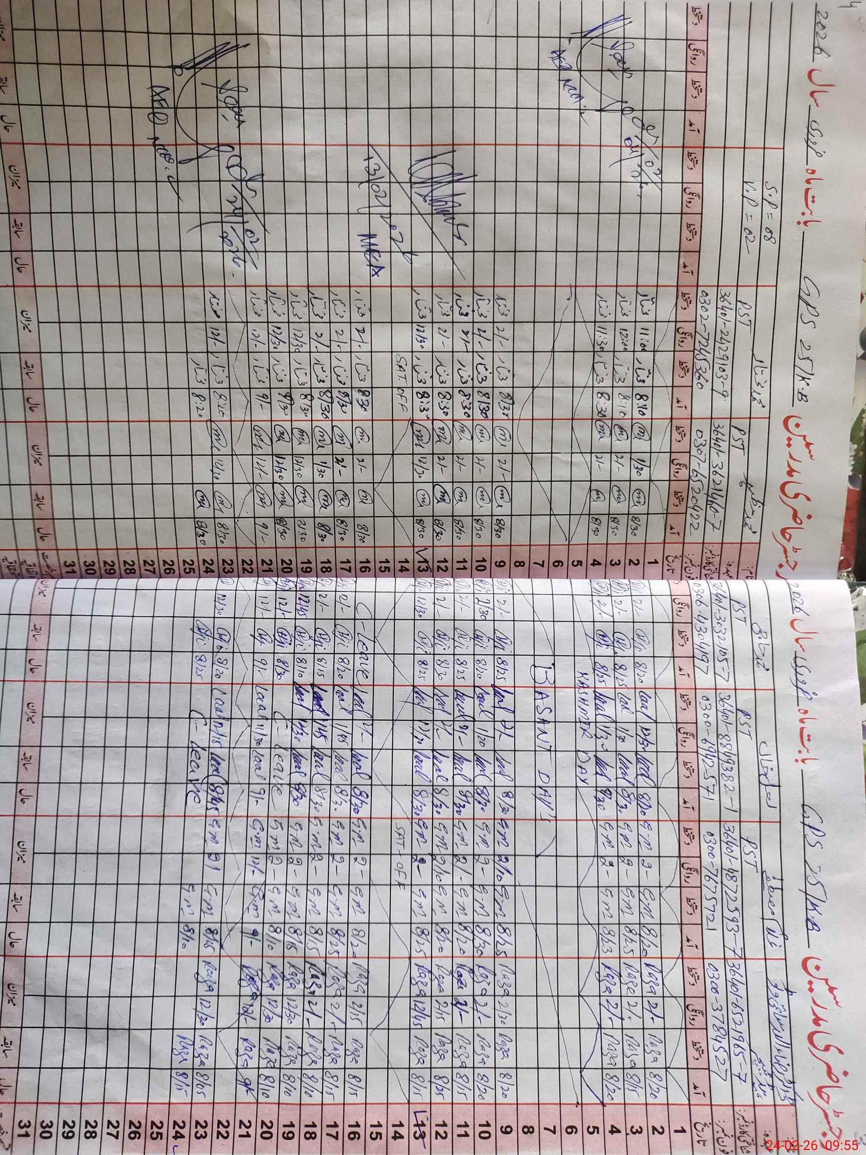 | CNIC | Full Name | Designation | R/C | Absence During Last Calender Month |