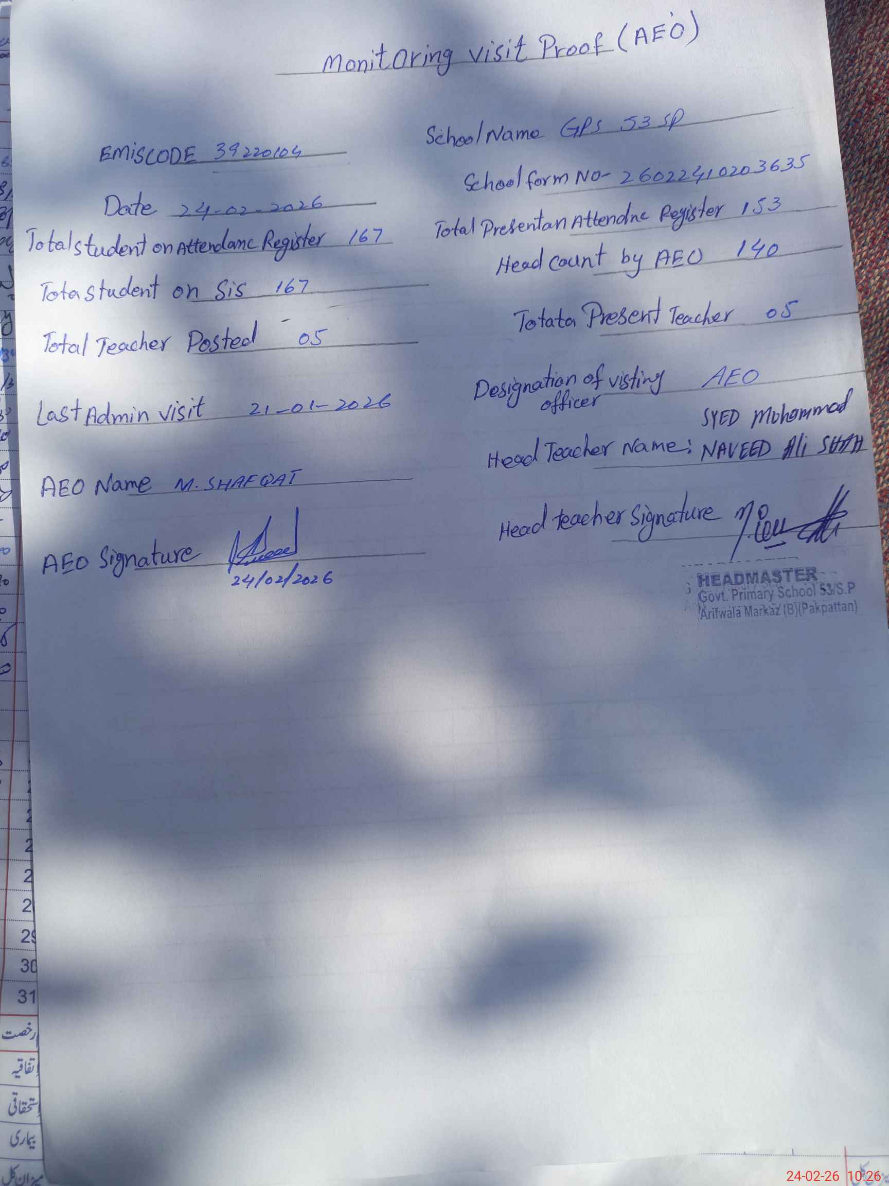 | EMIS Code: 39220104 | Name of School: GPS 53 SP | |||