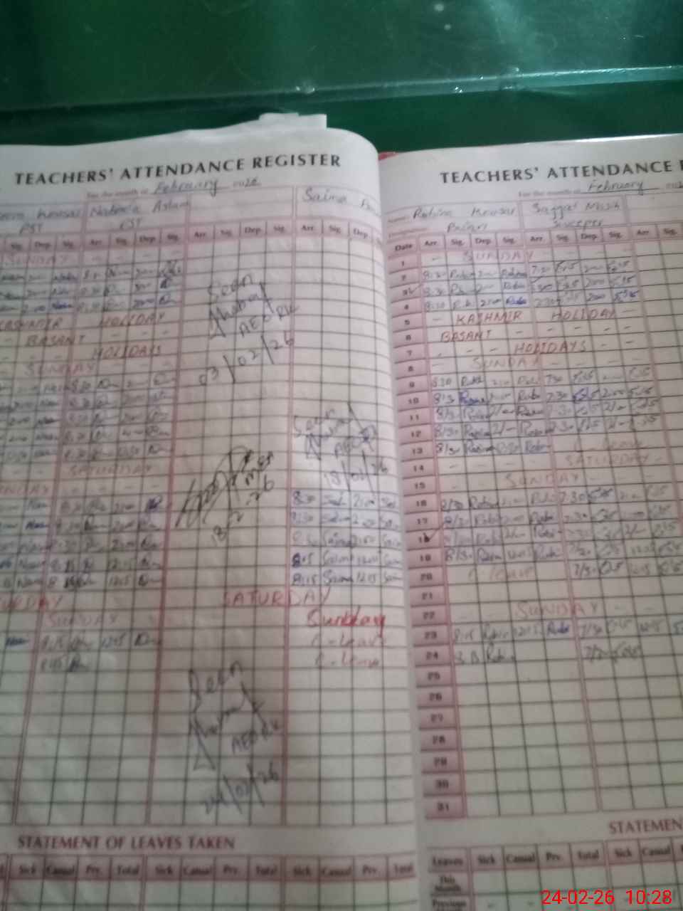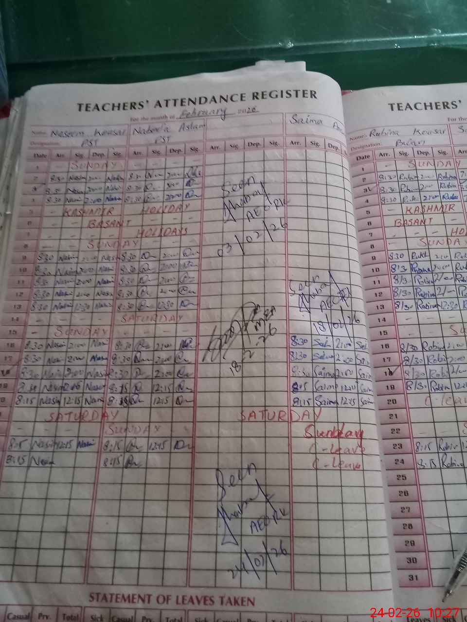 | 36**** | An**** Kh**** | PST Science/Maths | Regular | 0 | 0 | 0 | 0 | 0 | 0 | 0 | 0 | 0 | Maternity |