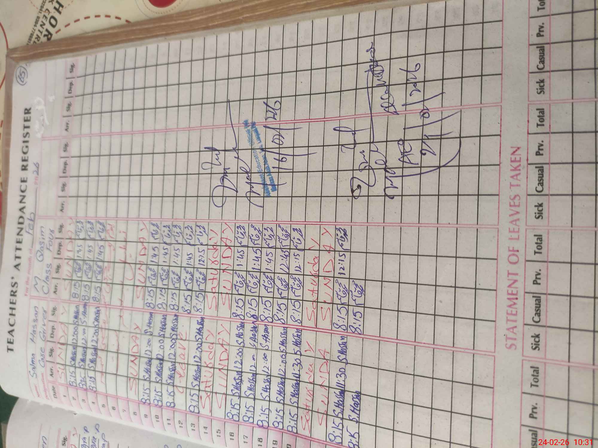 | Leave | Duty | Absent | Maternity | Medical | Ex- Pak |