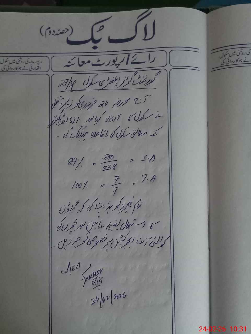 | Certified that this School was Inspected by the Undersigned MEA/DMO Today and the Information Stated Above is as Per Record. | |||||