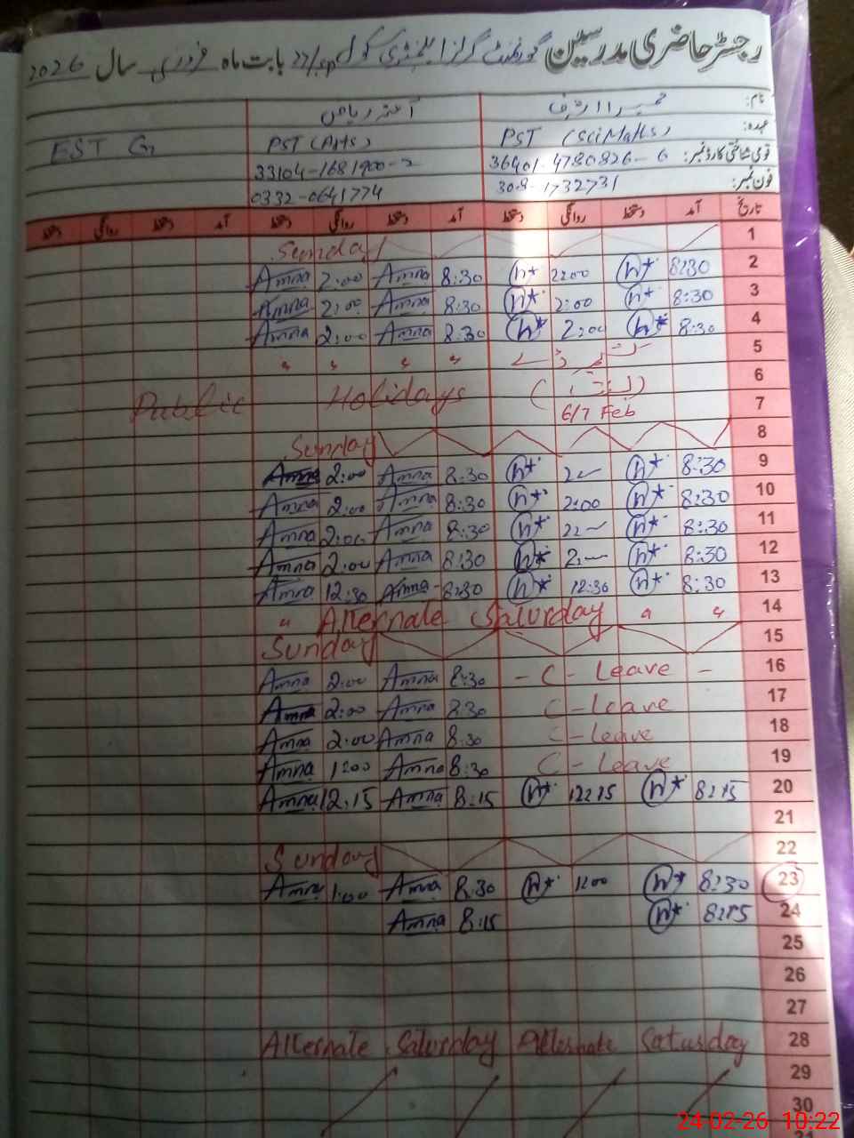 | Name: MA**** RU**** LE**** Designation: (School Headmaster's/Headmistress's) S.S.T.( ARTS) Phone/Cell Number: 03**** |