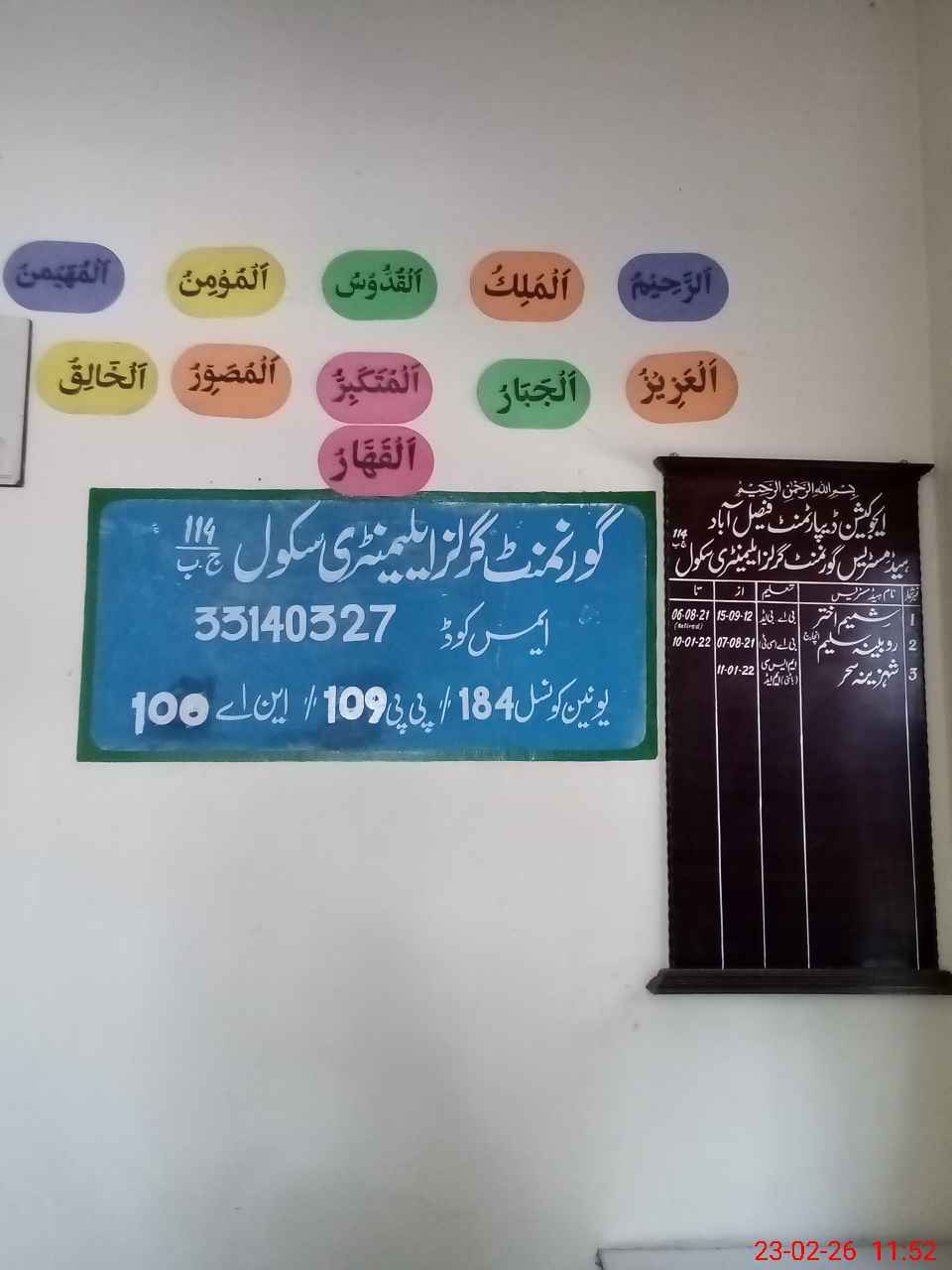 | EMIS Code: 33140327 | Name of School: GGES CHAK 114 JB | |||
