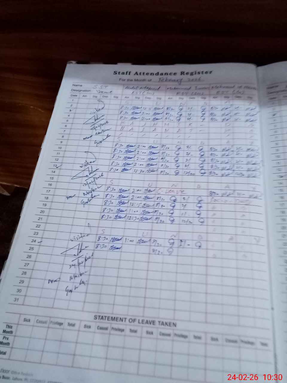 | Leave | Duty | Absent | Maternity | Medical | Ex- Pak |