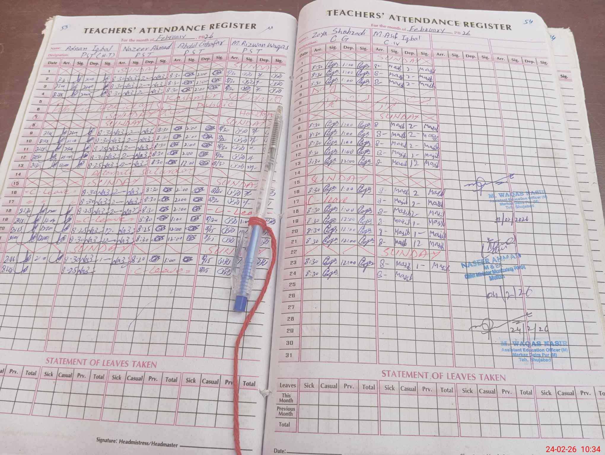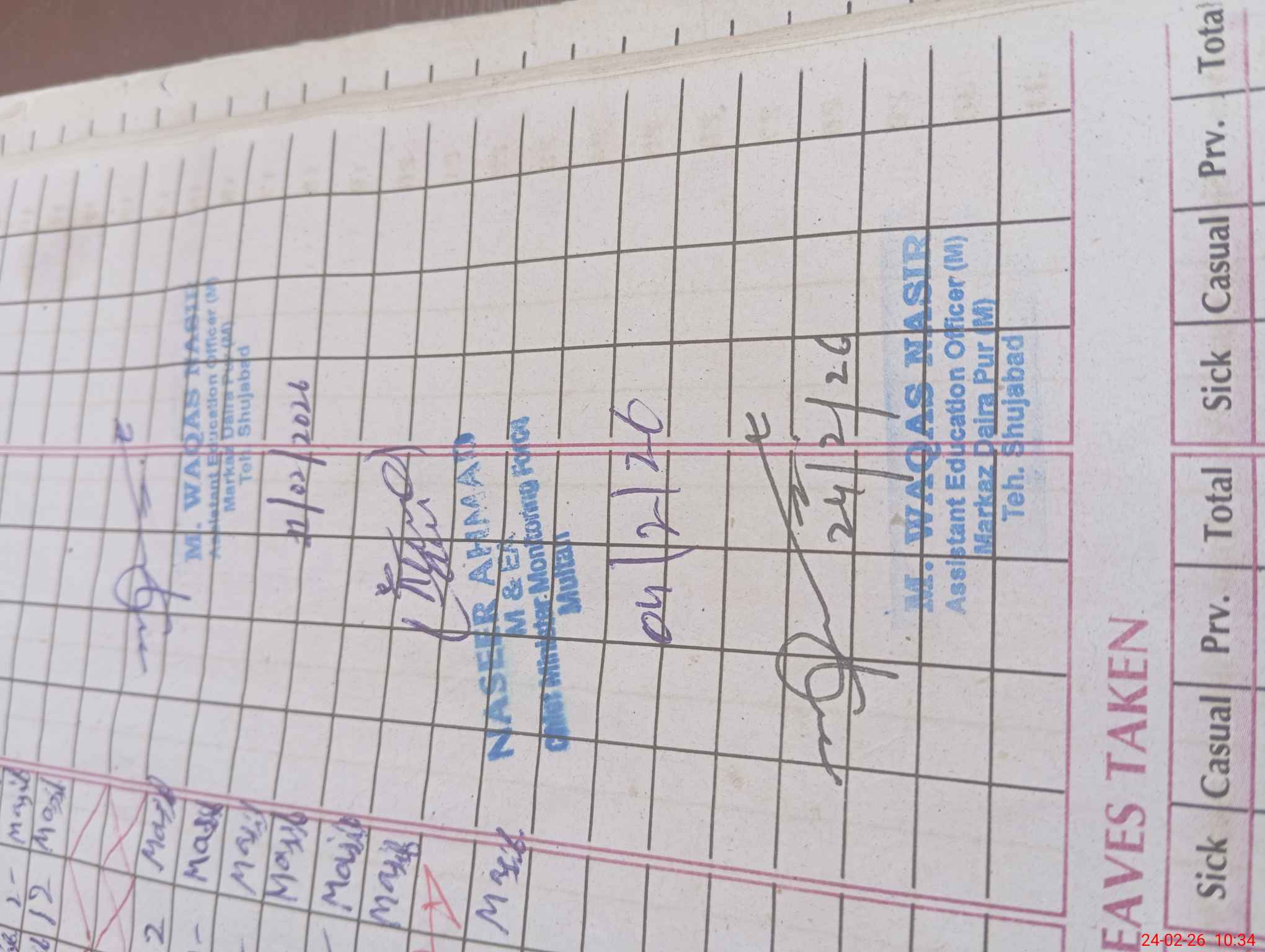 | CNIC | Full Name | Designation | R/C | Absence During Last Calender Month |