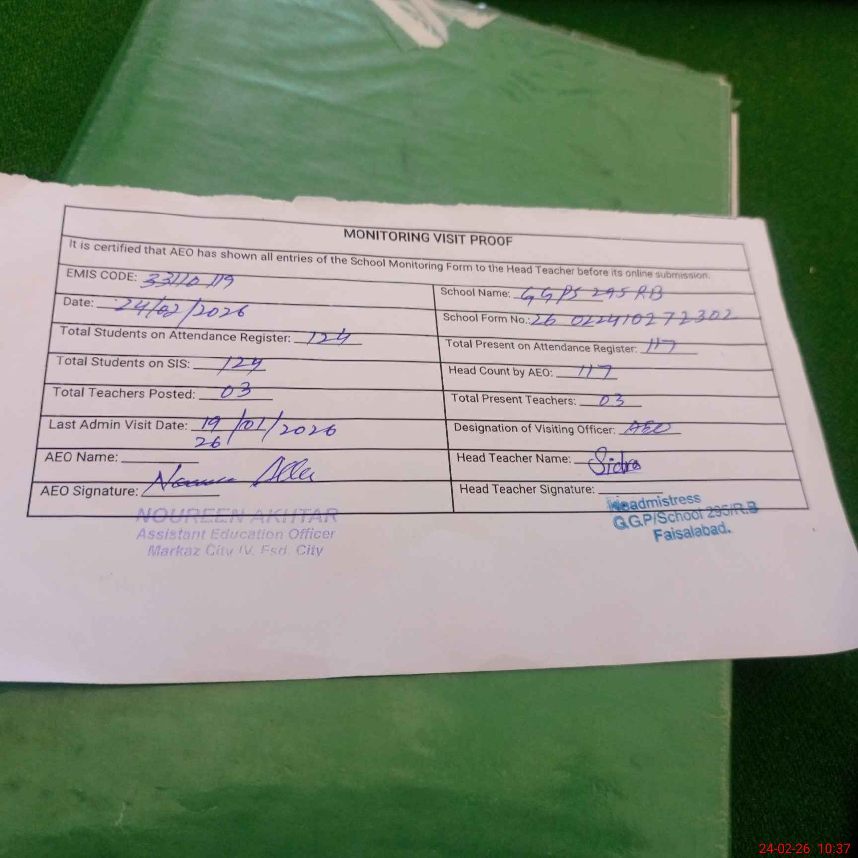 | EMIS Code: 33110119 | Name of School: GGPS CHAK 295 RB | |||