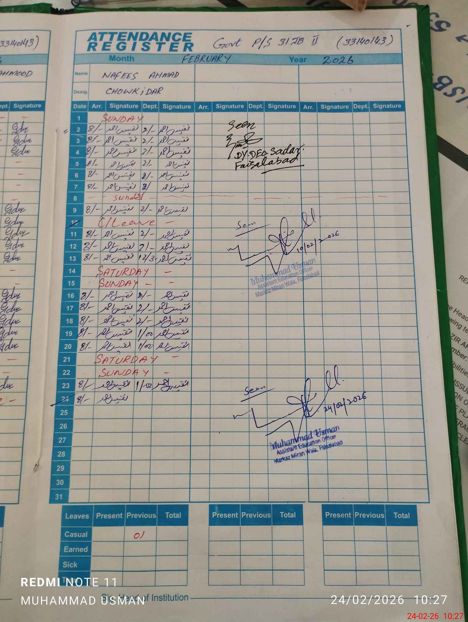 | EMIS Code: 33140143 | Name of School: GES CHAK NO. 31 JB II | |||