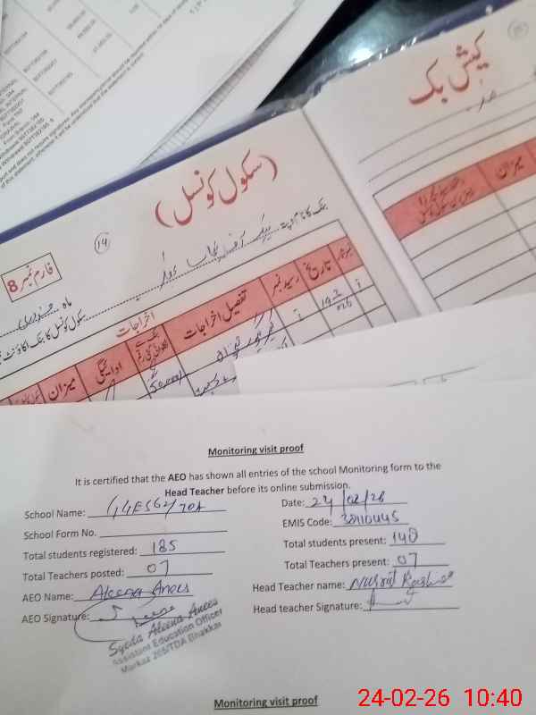 | Certified that this School was Inspected by the Undersigned MEA/DMO Today and the Information Stated Above is as Per Record. | |||||
