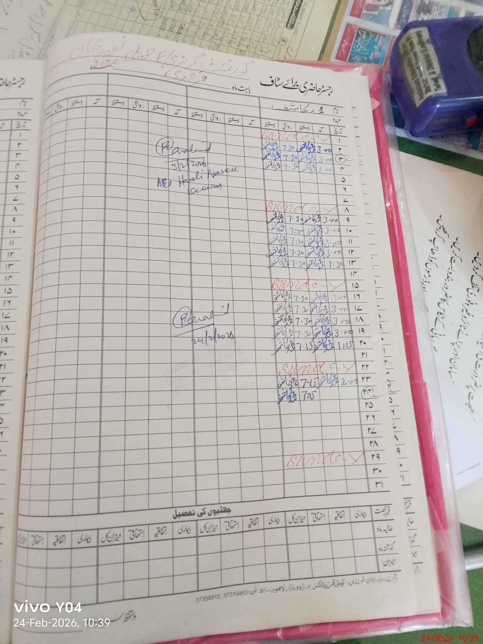 | CNIC | Full Name | Designation | R/C | Absence During Last Calender Month |