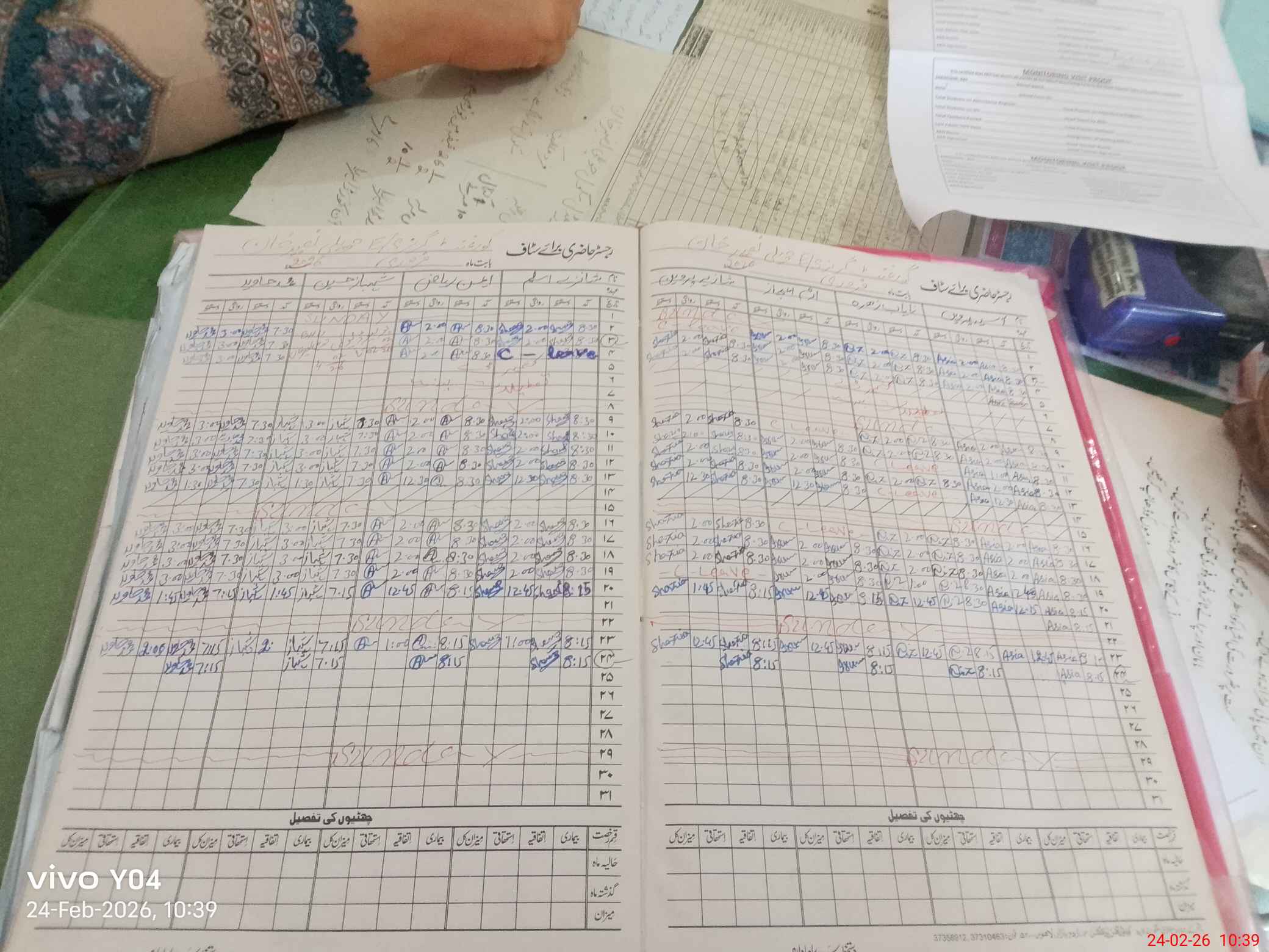 | Leave | Duty | Absent | Maternity | Medical | Ex- Pak |