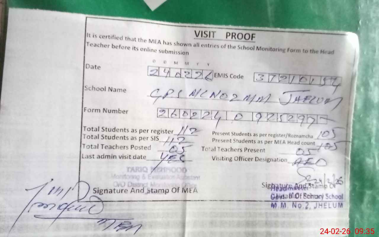 | EMIS Code: 37210154 | Name of School: GPS MC NO.2 MACHINE MOHALLAH | |||