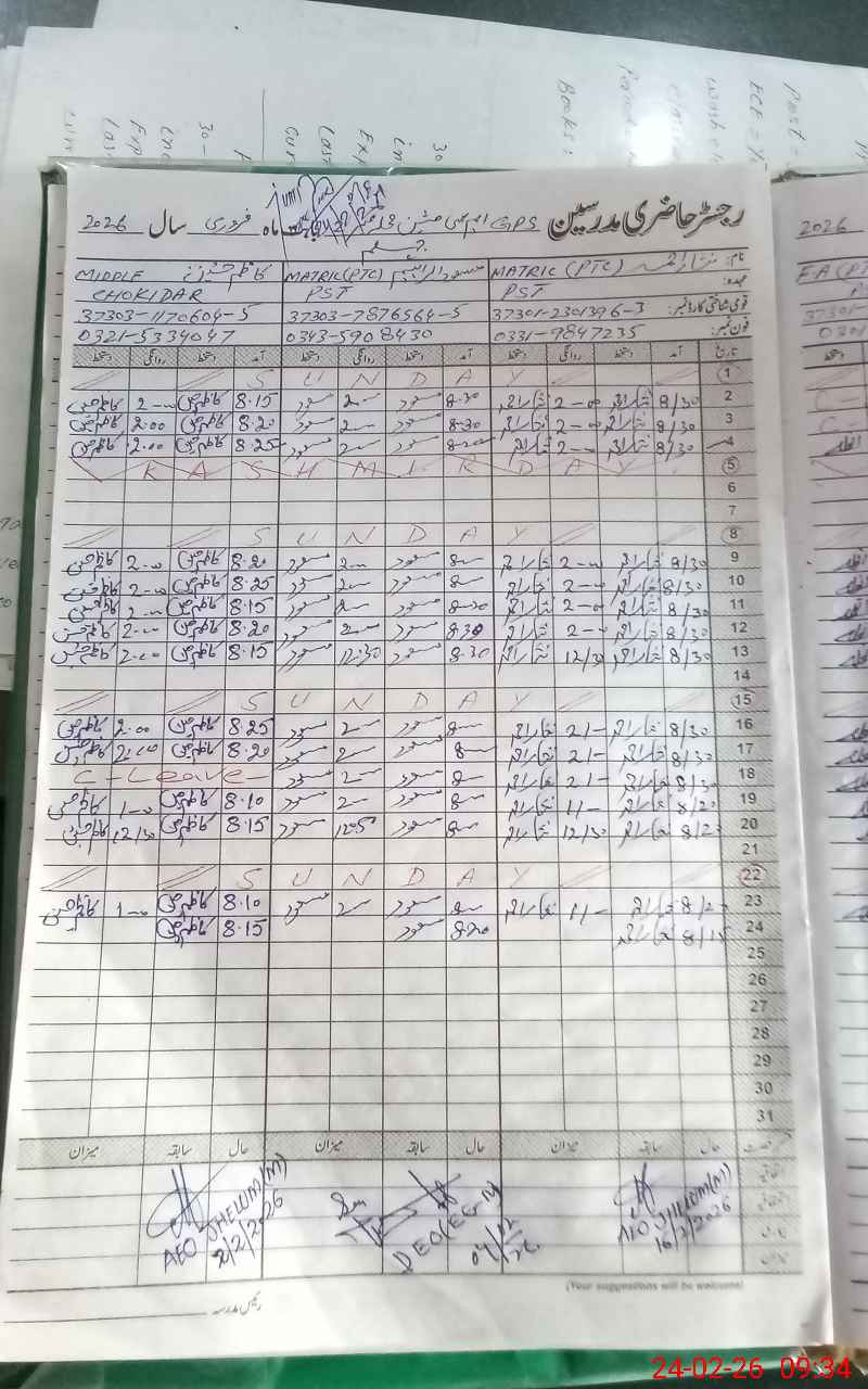| Name: Sa**** UrRe**** Designation: (School Headmaster's/Headmistress's) HEADMASTER Phone/Cell Number: 03**** |