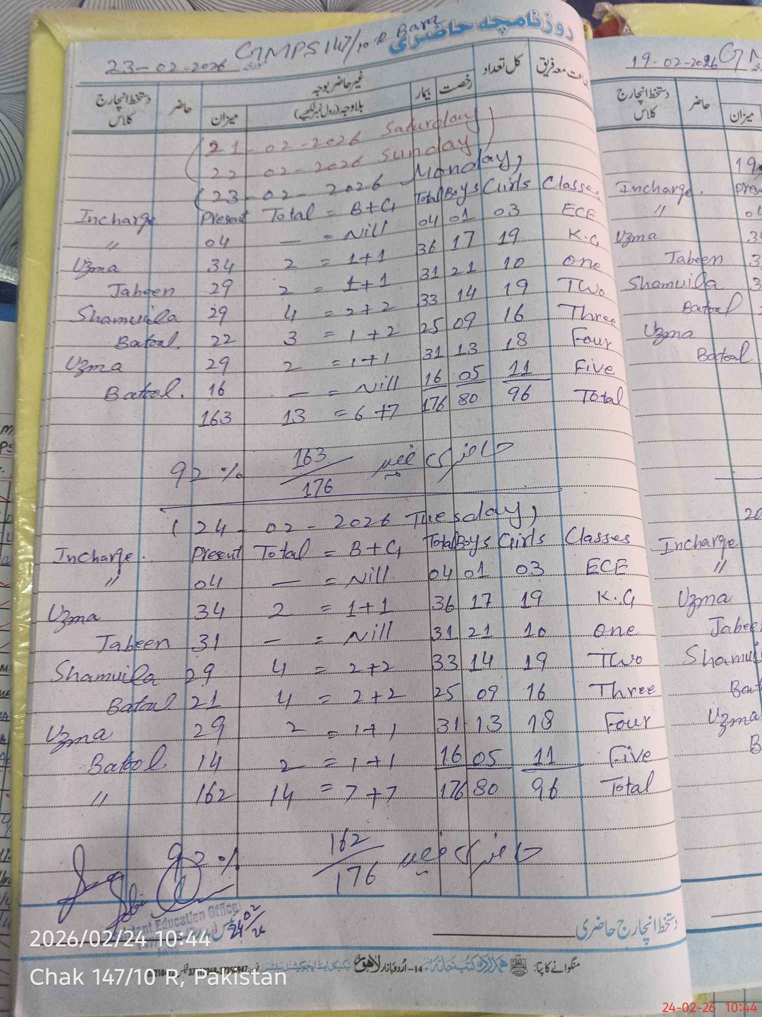 | Name: Uz**** Ja**** Designation: (School Headmaster's/Headmistress's) PST Phone/Cell Number: 03**** |