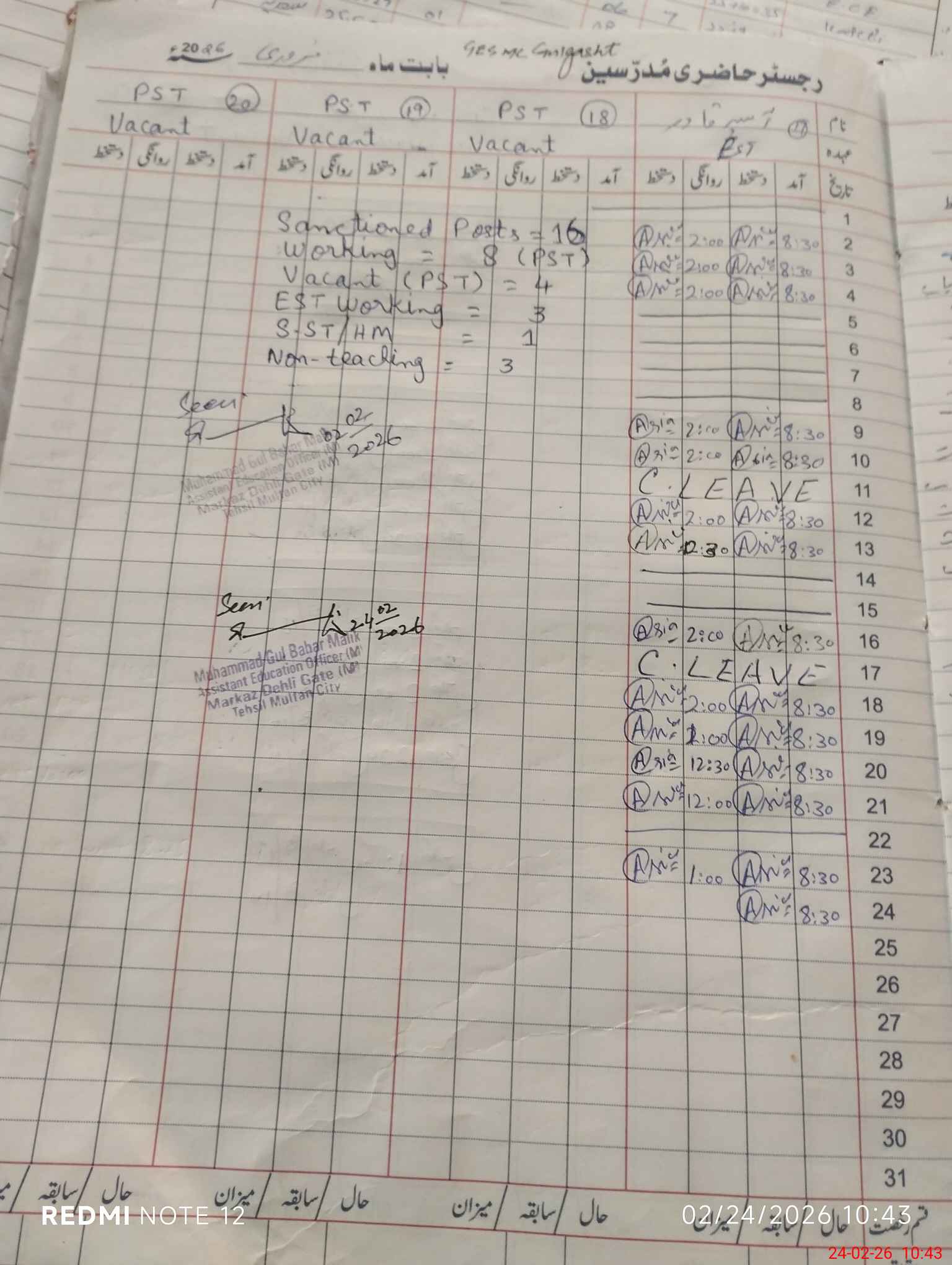 | 36**** | Ka**** Mu**** Ar**** | PST Science/Maths | Regular | 0 | 0 | 0 | 0 | 0 | 0 | 0 | 0 | 0 | Casual |
