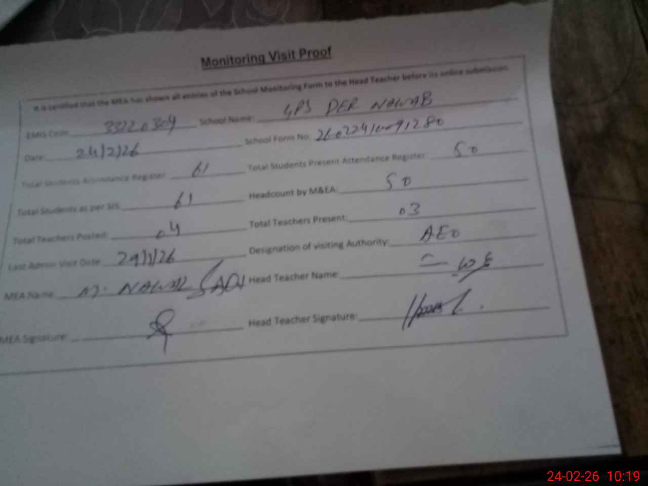 | EMIS Code: 33220304 | Name of School: GPS DERA NAWAB | |||