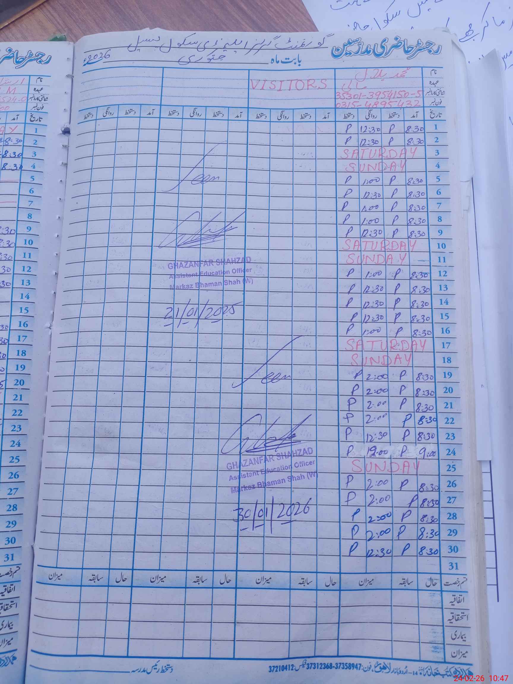 | Name: RE**** MU**** Designation: (School Headmaster's/Headmistress's) EST Phone/Cell Number: 03**** |