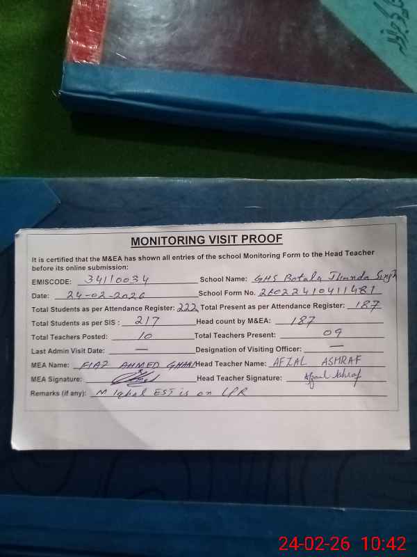| EMIS Code: 34110034 | Name of School: GHS BOTALA JHANDA SINGH | |||