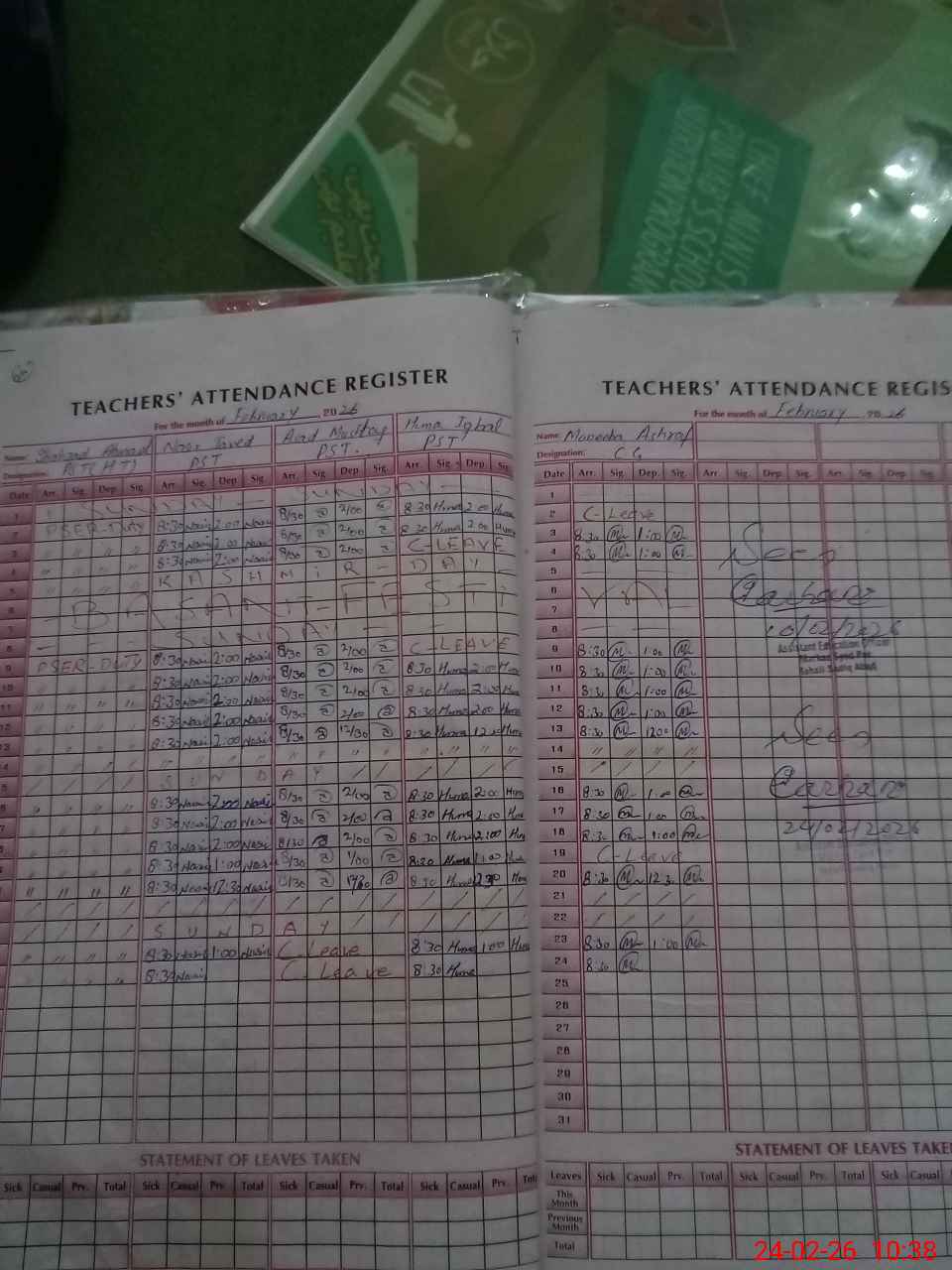 | Name: SH**** AH**** Designation: (School Headmaster's/Headmistress's) PST Phone/Cell Number: 03**** |