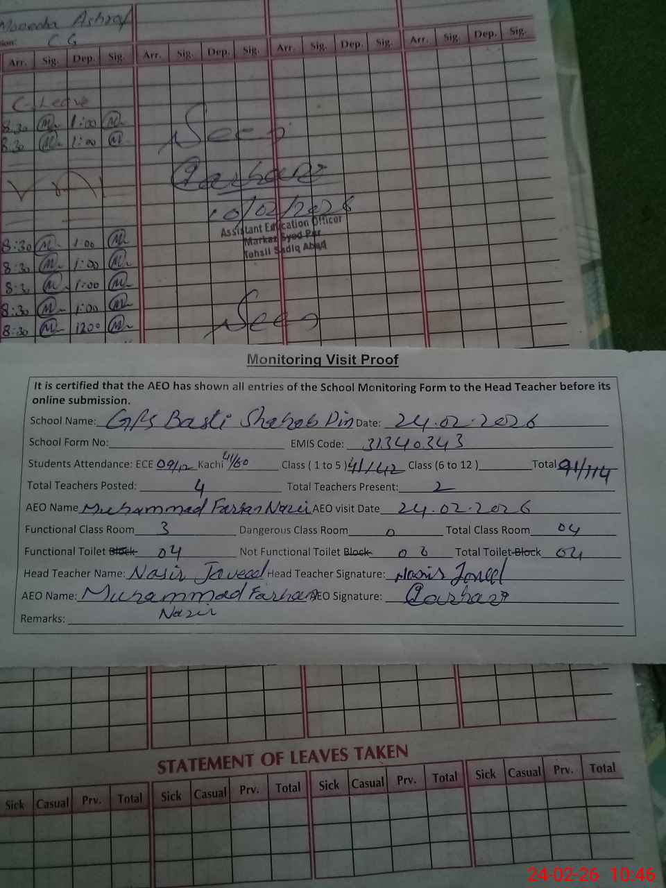 | Attendance Register | Head Teacher | MEA with School | Visit Proof |