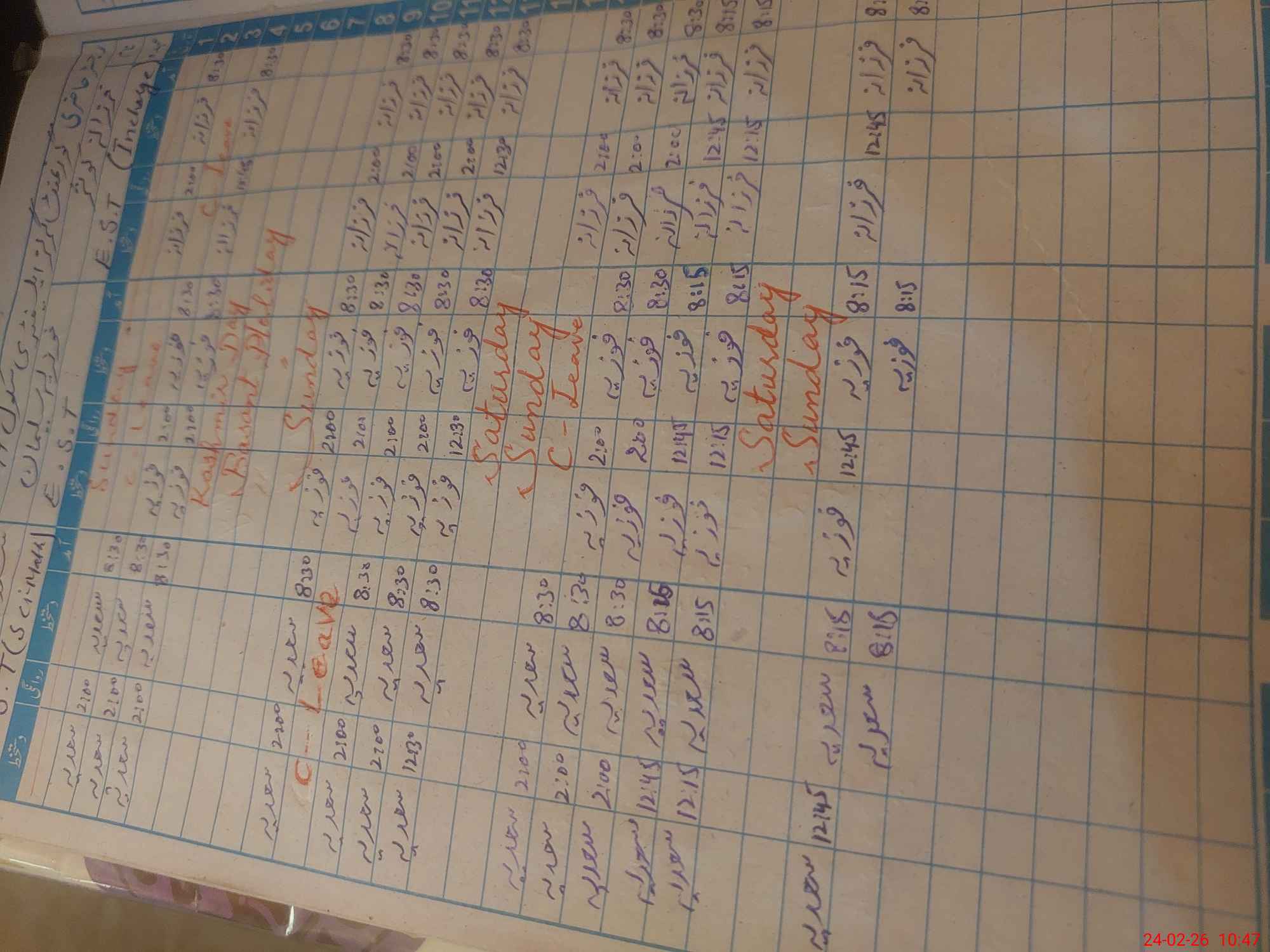 | Leave | Duty | Absent | Maternity | Medical | Ex- Pak |