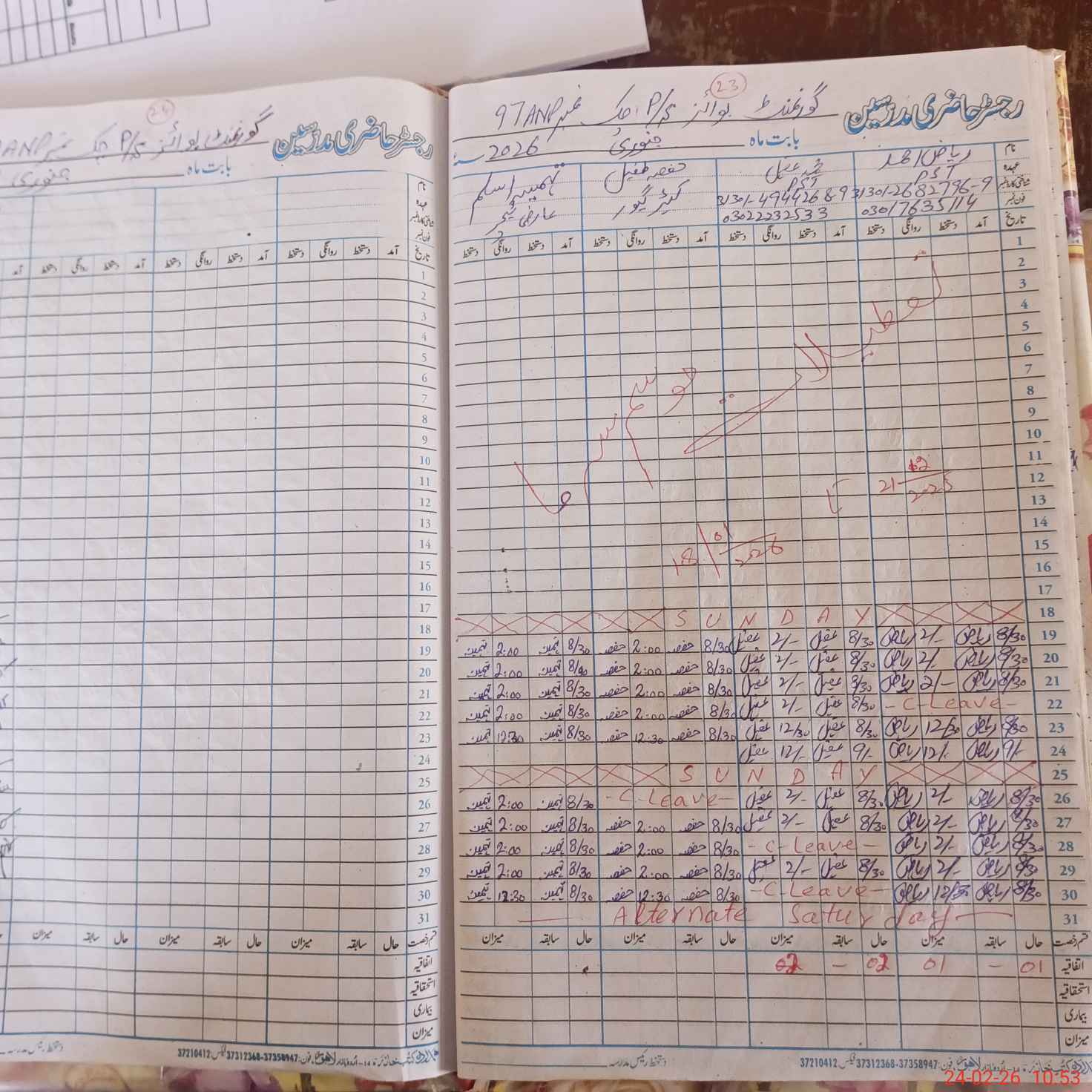 | CNIC | Full Name | Designation | R/C | Absence During Last Calender Month |