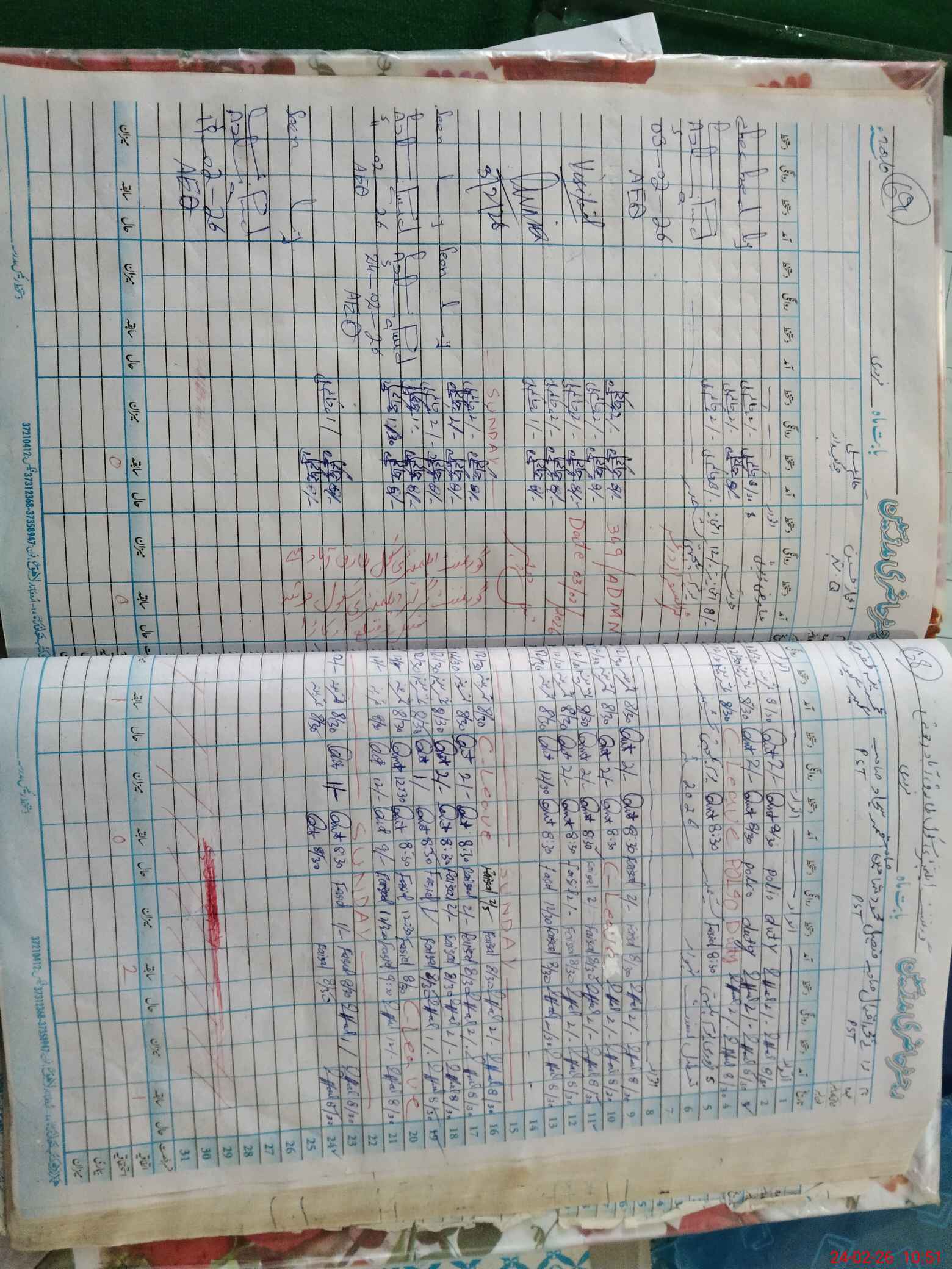 | Leave | Duty | Absent | Maternity | Medical | Ex- Pak |
