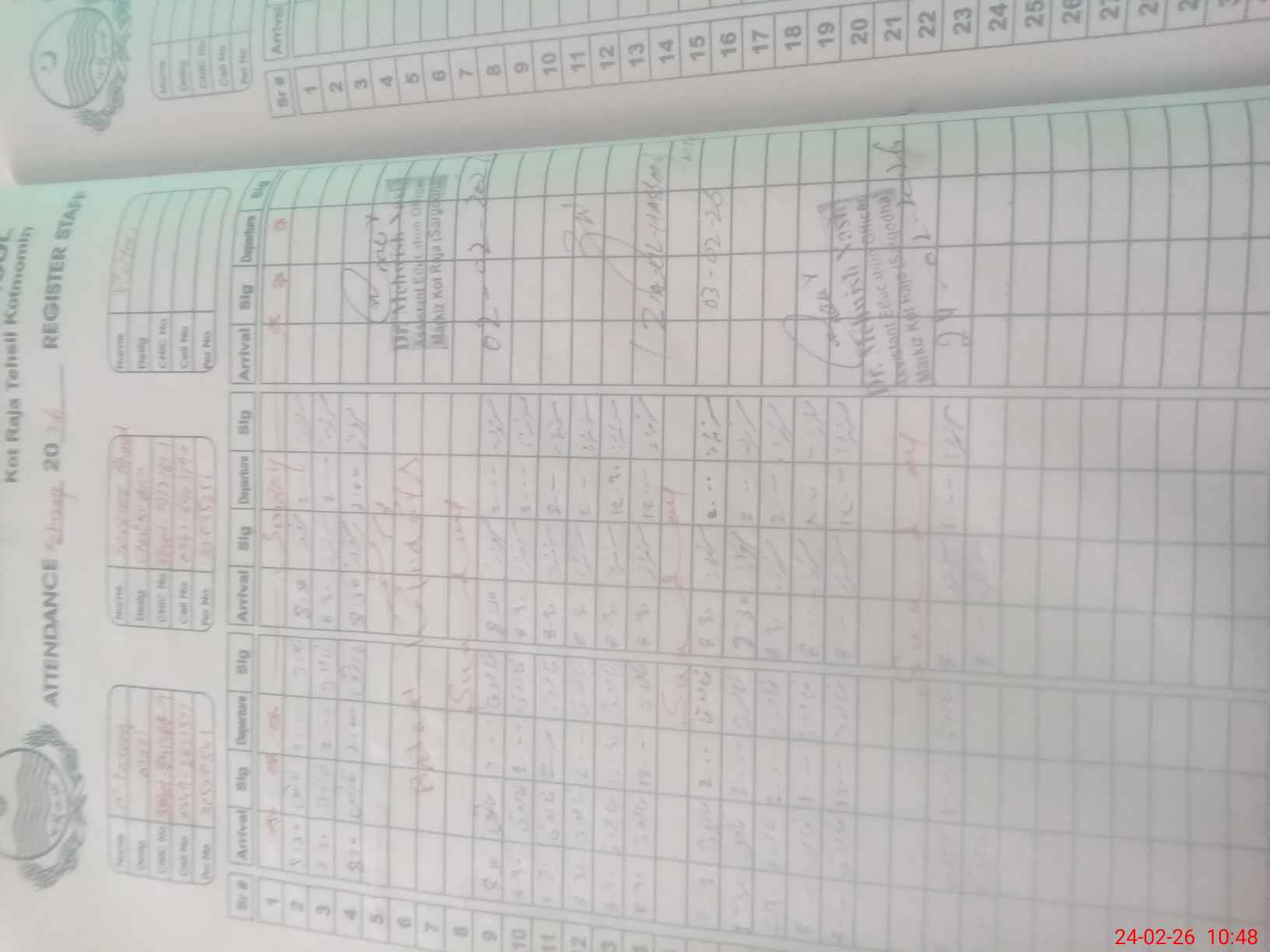 | CNIC | Full Name | Designation | R/C | Absence During Last Calender Month |
